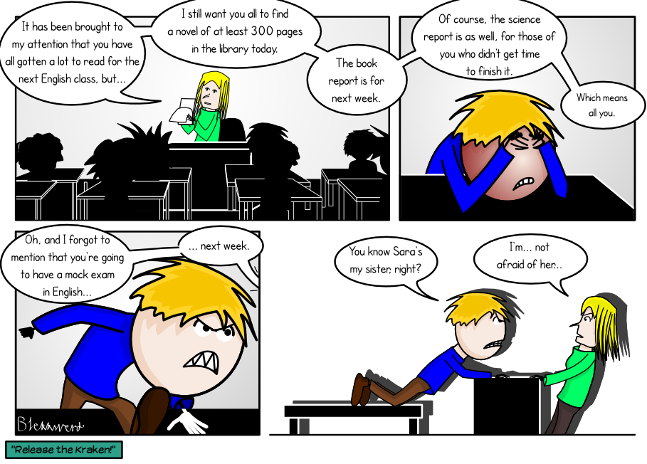 I swear I don't hold a grudge against my junior high teachers or anything. Norwegian version: http://saraenlivsfare.nettserier.no/2014/11/20/ French version: coming soon
