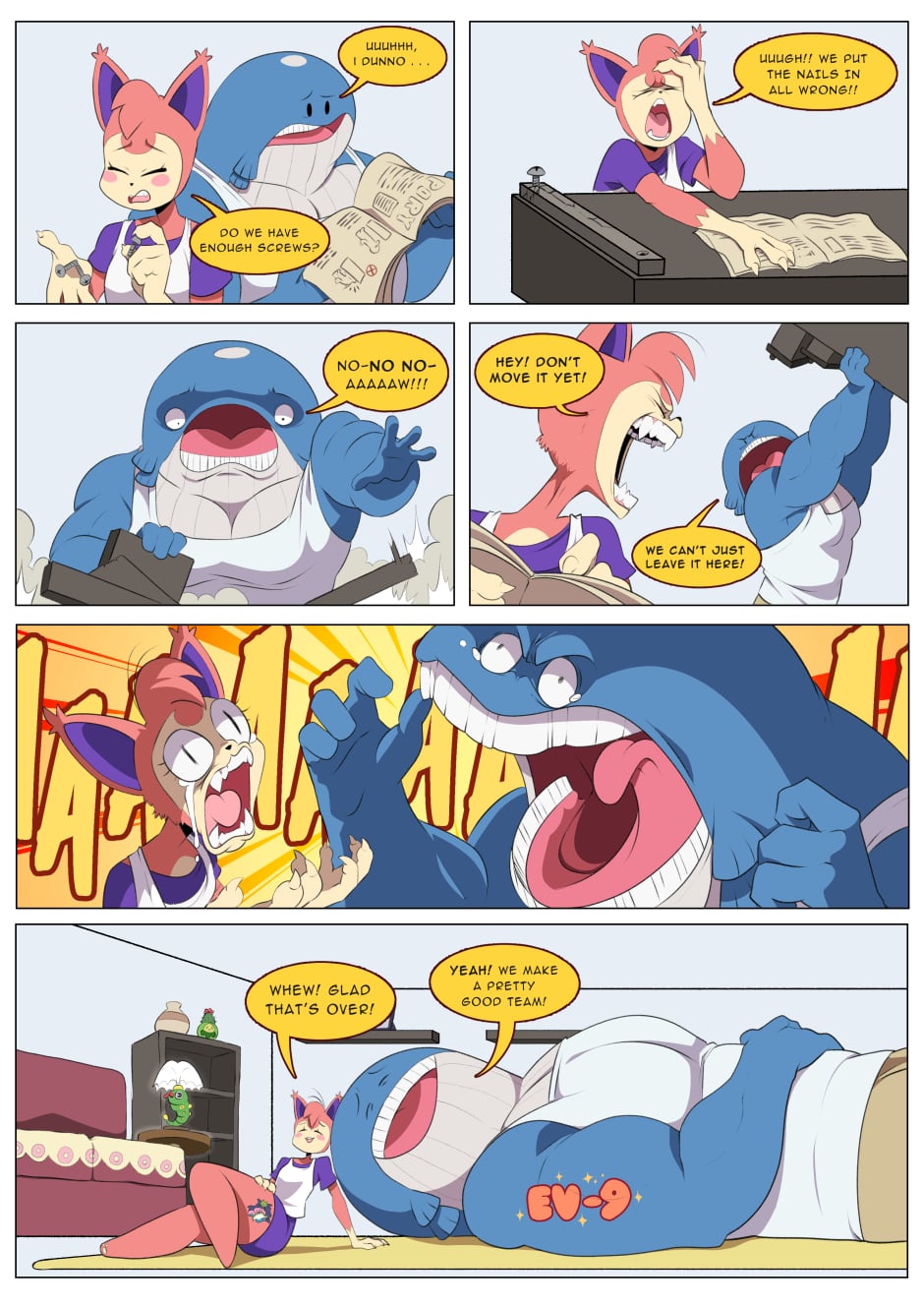 Skitty and Wailord take on the true test of any relationship: building furniture together.