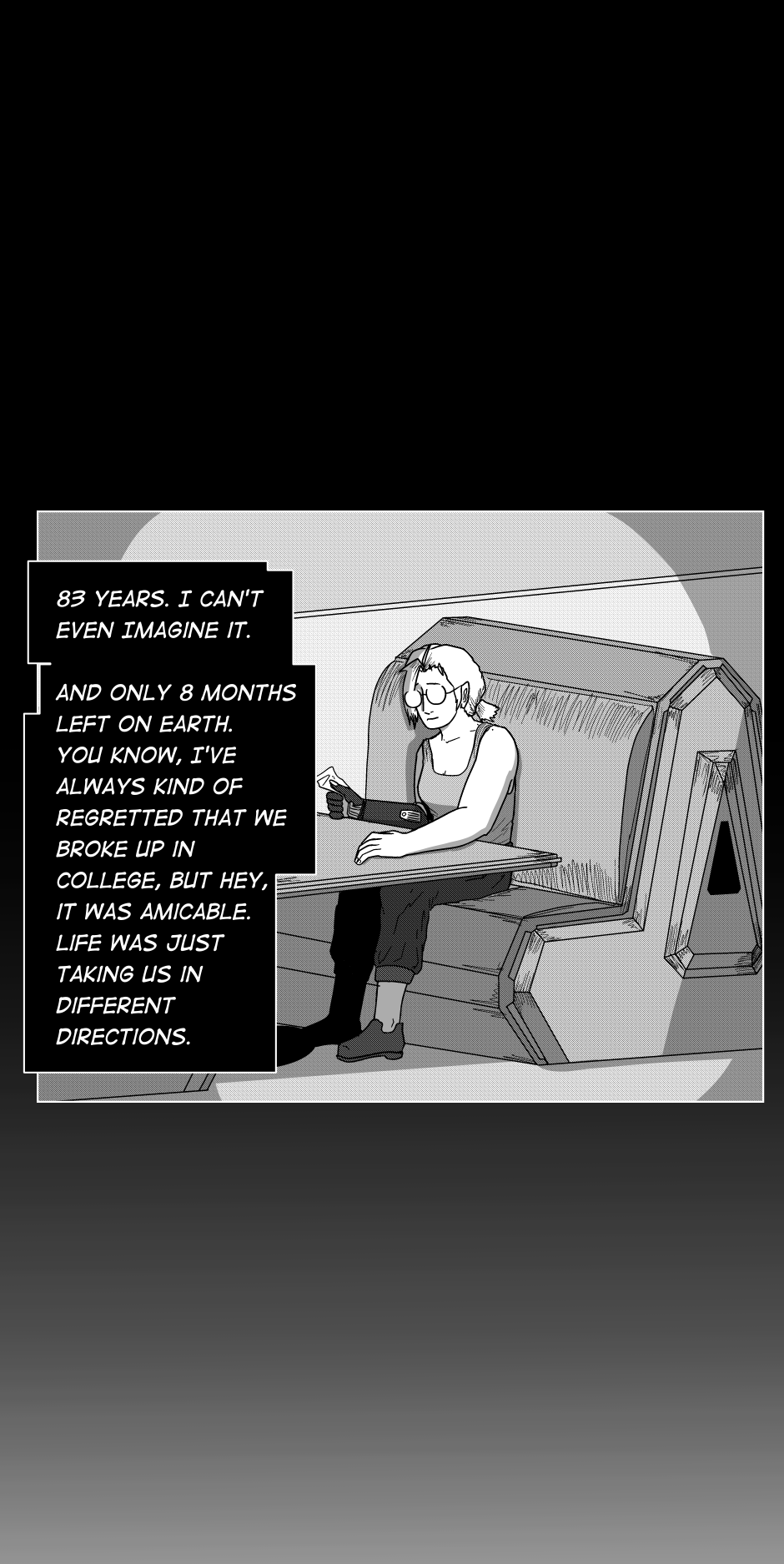 The year is 2096. Chance brings Natalie Gibson back together with her ex-girlfriend, Dr. Eleanor Chapelle. Though they quickly rekindle their old romance, it comes with an expiration date. In eight months Ellie will depart on a deep space exploratory mission, and will not return to Earth for 168 years. Will the pair be able to make the most of their time together, or will their relationship crumble under the strain?