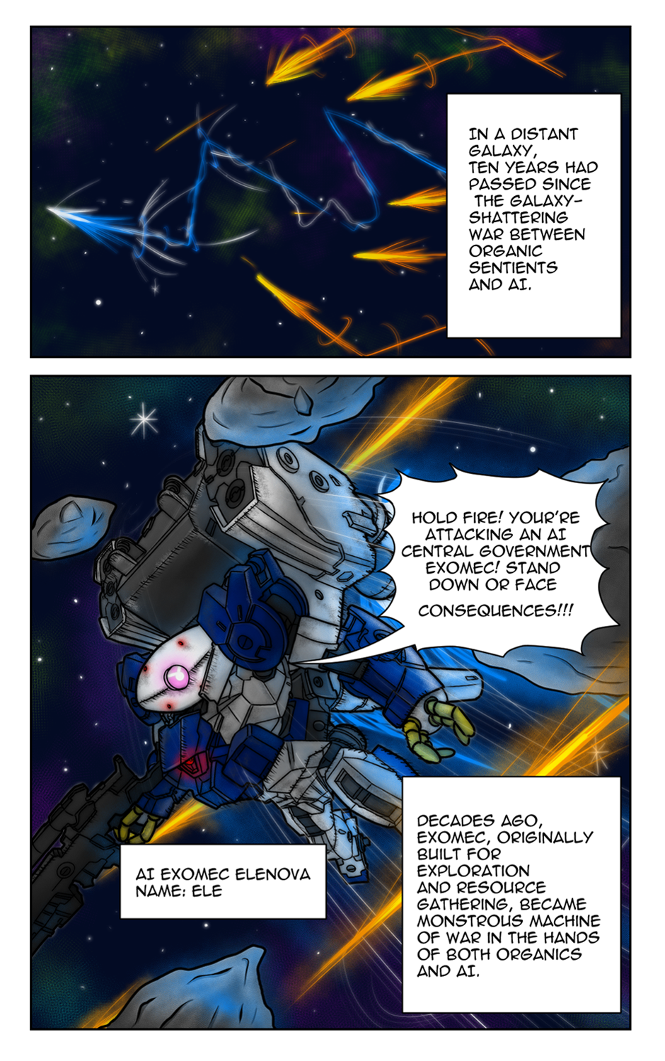 Introducing Ele, the main protagonist of the story. She is an AI Exomec that search her path to her freedom.