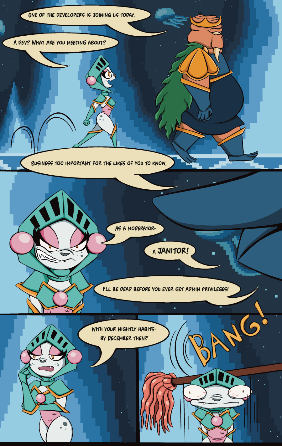 Once again, you bring something into this story that I can't believe I've never seen explored before.. freakin mods. That was amazing. Save your breath*
