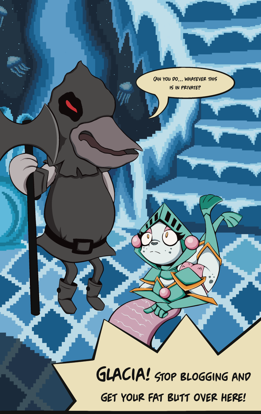When a developer visits, Glacia will do anything to try and impress them.
