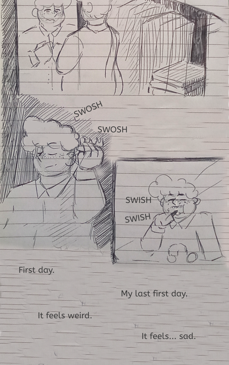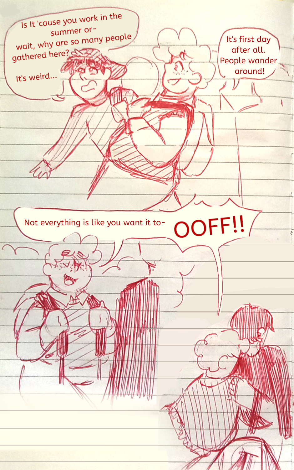 Michael starts his day like he normally does, relizing today's gonna be his last first day of school. He meets his friends, he admires the school and everything is going like it awlays did, until...