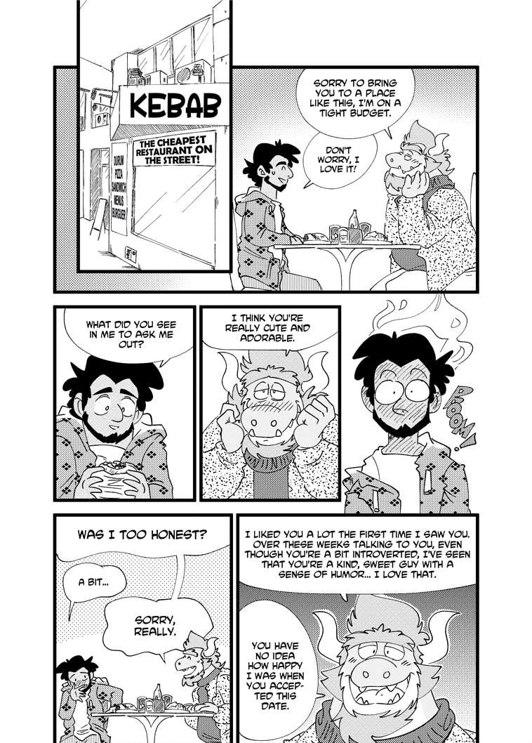 Aaron is an introverted student who moves to a Mediterranean coastal town called Arena Blanca to study for a Higher Degree in Computer Science. During his walk, he meets Rodrigo, a dragon who runs the churro stand in the hood and they strike up a friendship... and something more.