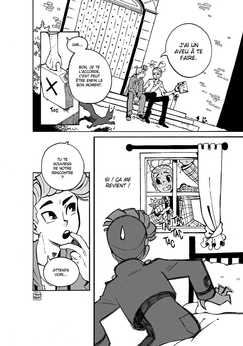Doujinshi Spirou et Fantasio que je dessine sur mon temps libre. Prévu en 55 pages, je posterai de manière aléatoire, en fonction de mon emploi du temps ! Sinon, je suis une mangaka pro, j'ai un bon milliers de pages que vous pouvez lire, cherchez @mana_pany sur le net.