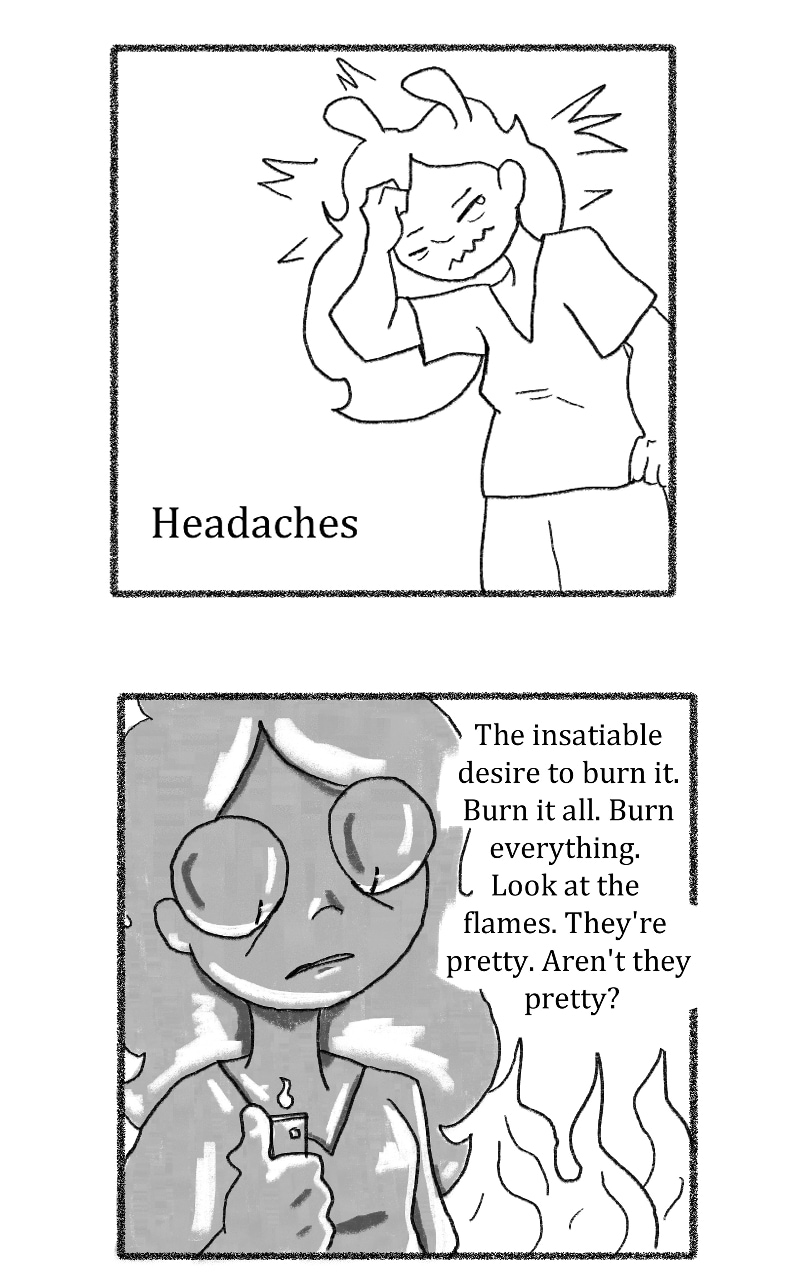 The flames always seem to soothe the cramps. They are the only thing that soothes them now.