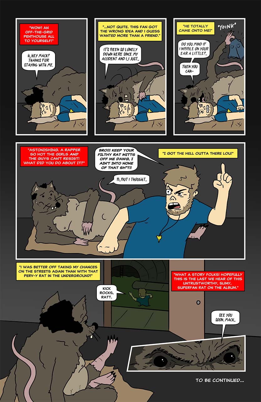 Mack is an upper middle class suburban deadbeat twenty-something who wants to be a famous rapper and social media influencer - no matter what it takes. Follow Mack as he is interviewed by radio personality Lou from "HOT 102 FM" and uncover what inspired the tracks on his latest album as he comes to terms with his demons in this action-packed romp full of tragedy, music, love, robots, monsters, and a haircut or two along the way.