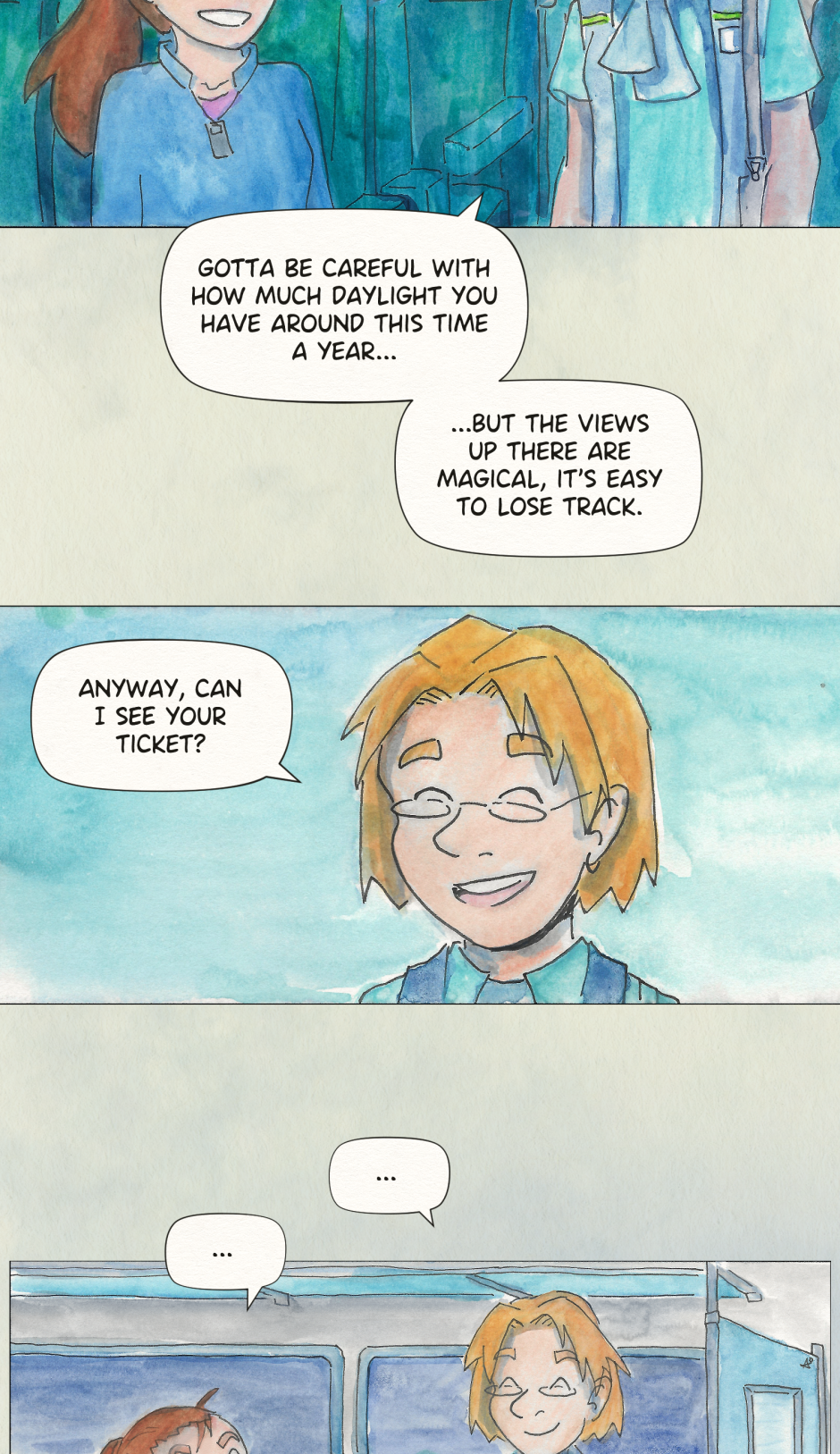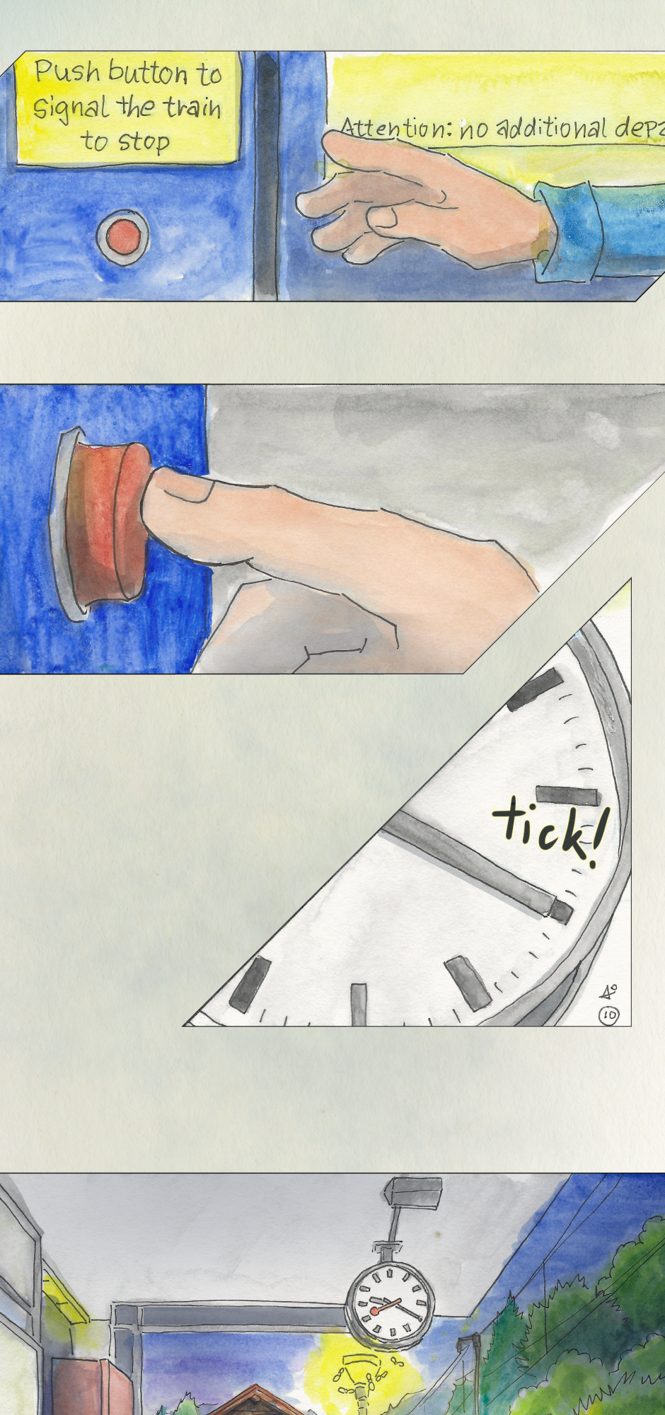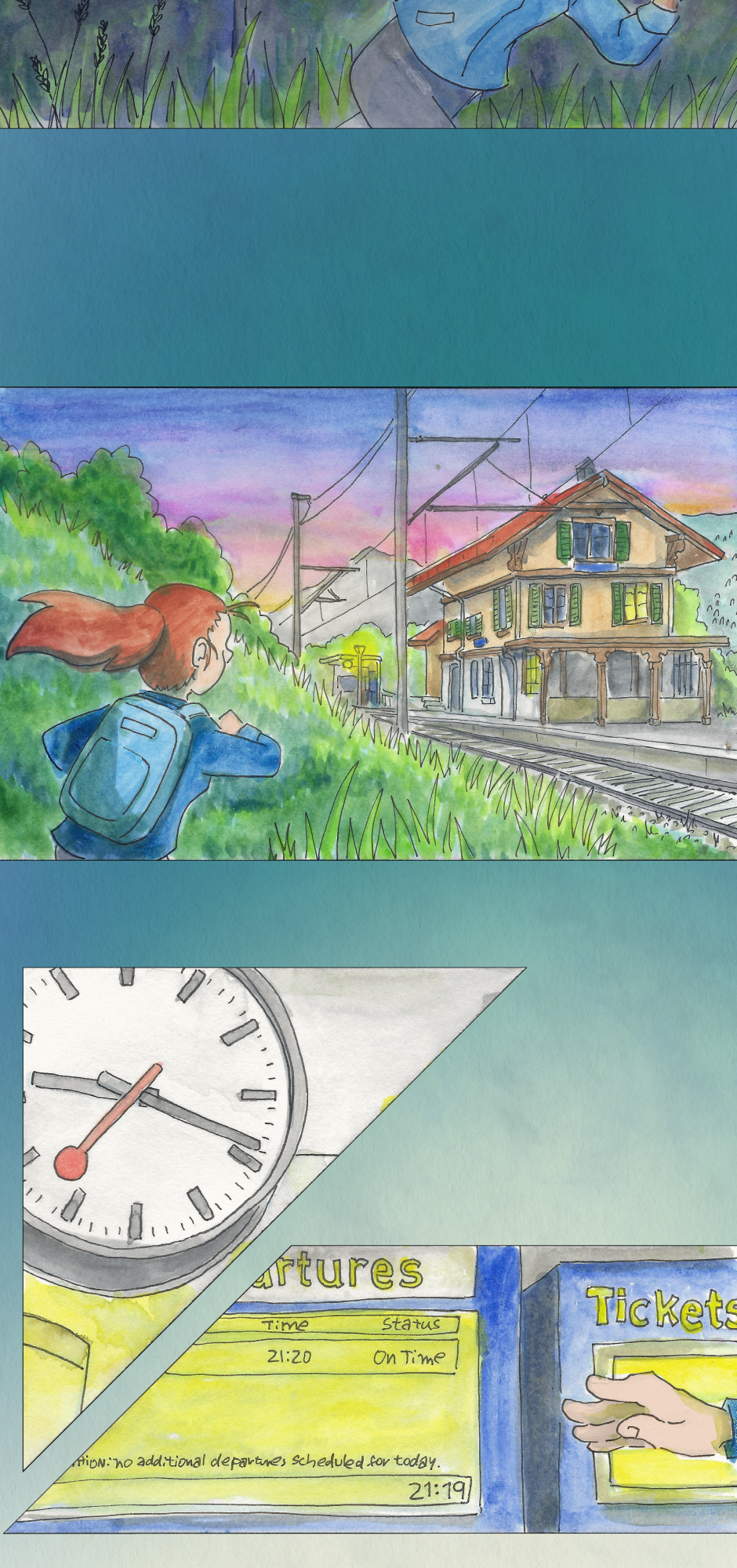 I really enjoyed this story! I like how the yellow light brought some sense of an upcoming doom, and that doom turned out to be a possibility to miss the last train :D and love that ending with not having a ticket haha ♥