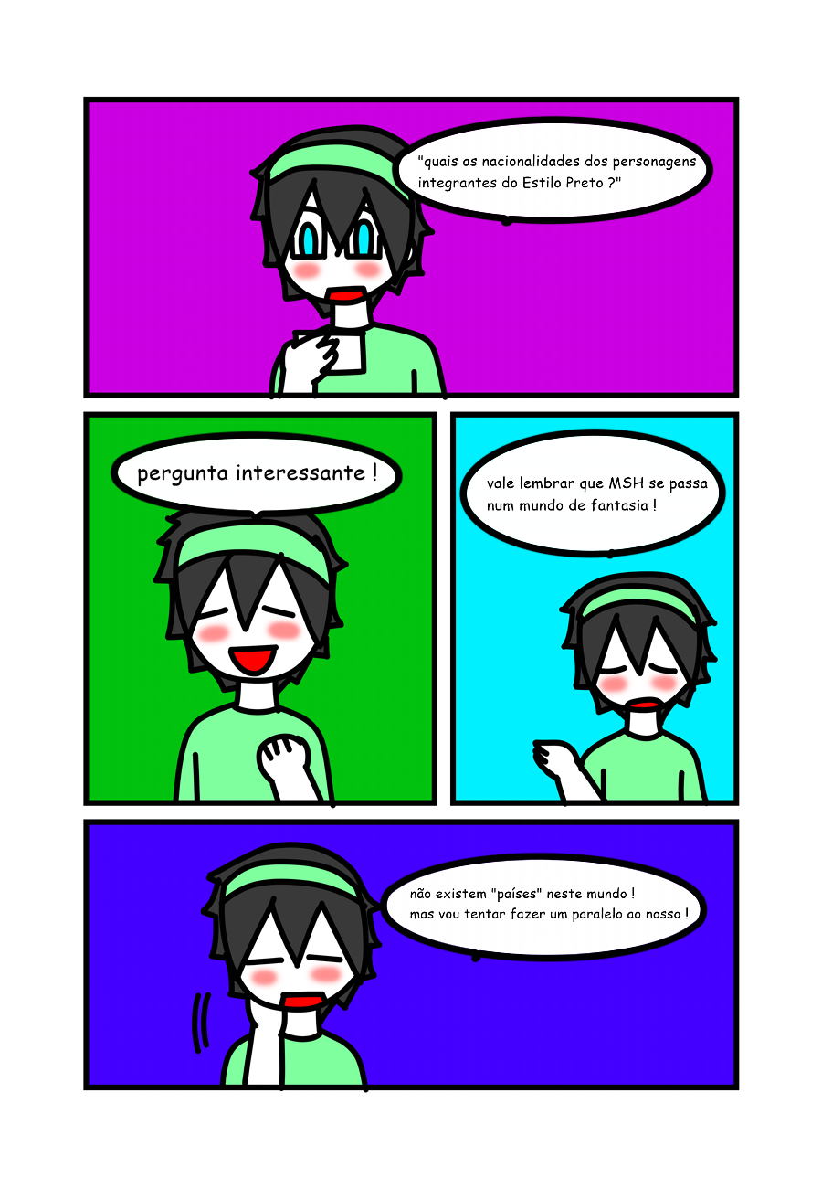 mais um episódio especial chegando ! muito obrigada a todos que participaram ! neste episódio descobrimos várias coisas legais a respeito dos personagens, principalmente sobre a parte da nacionalidade eu confesso que tive minhas dúvidas em escolher um país para os personagens do Estilo Preto ! eu levei em conta dois fatores pra escolher os países: etnia e personalidade ! caso discordam de algum ponto, não tem problema ! é só deixar nos comentários o que vocês acham ! e na parte de video games, descobrimos que alguém odeia video games e considera "porcarias" (parece com alguém que nós conhecemos, não ? -_-) e quer proibir os outros de jogar video games...