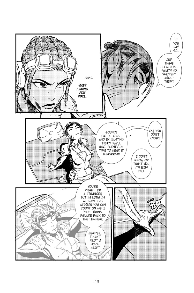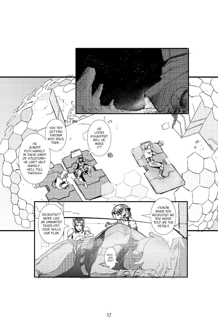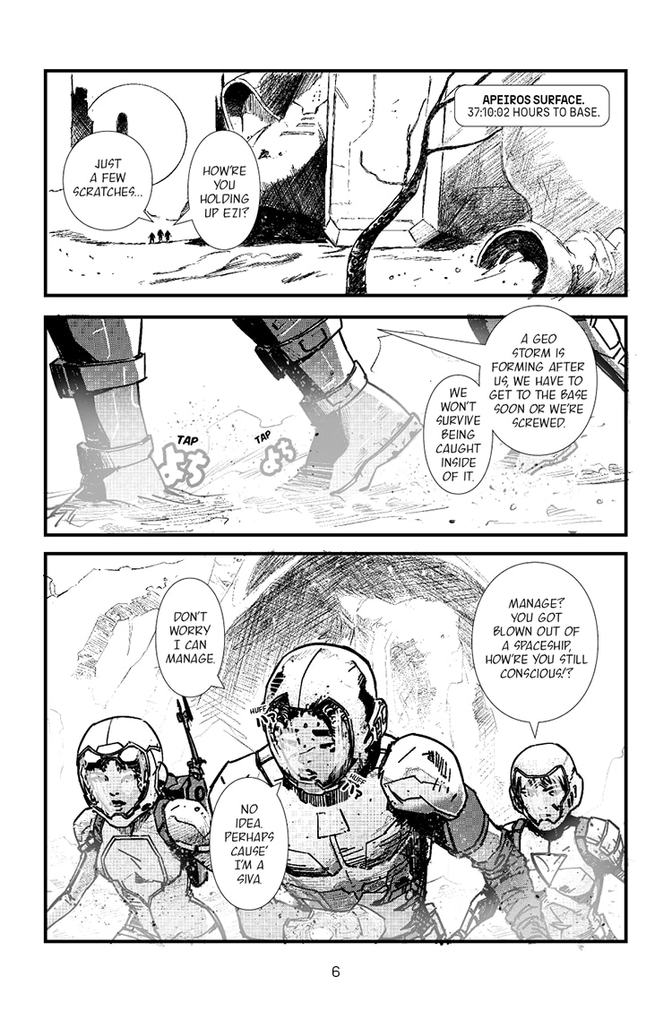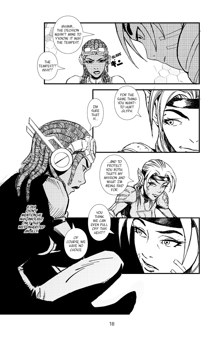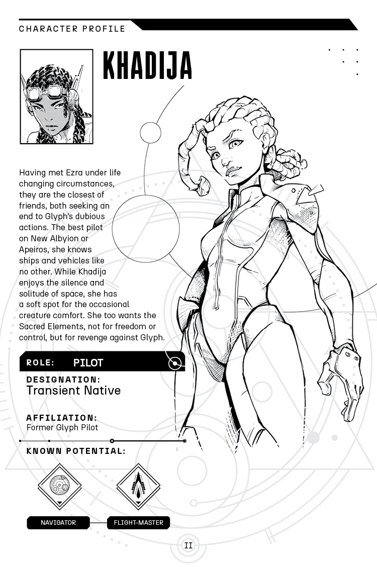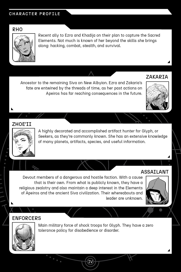 Following the crashed arrival on the surface of Apeiros, the trio of Ezra, Khadija, and Rho are getting their bearings to complete their mission to steal the Sacred Element from Glyph's base on Apeiros. Meanwhile, two factions back on New Albyion are clashing for something or someone really important to their cause...