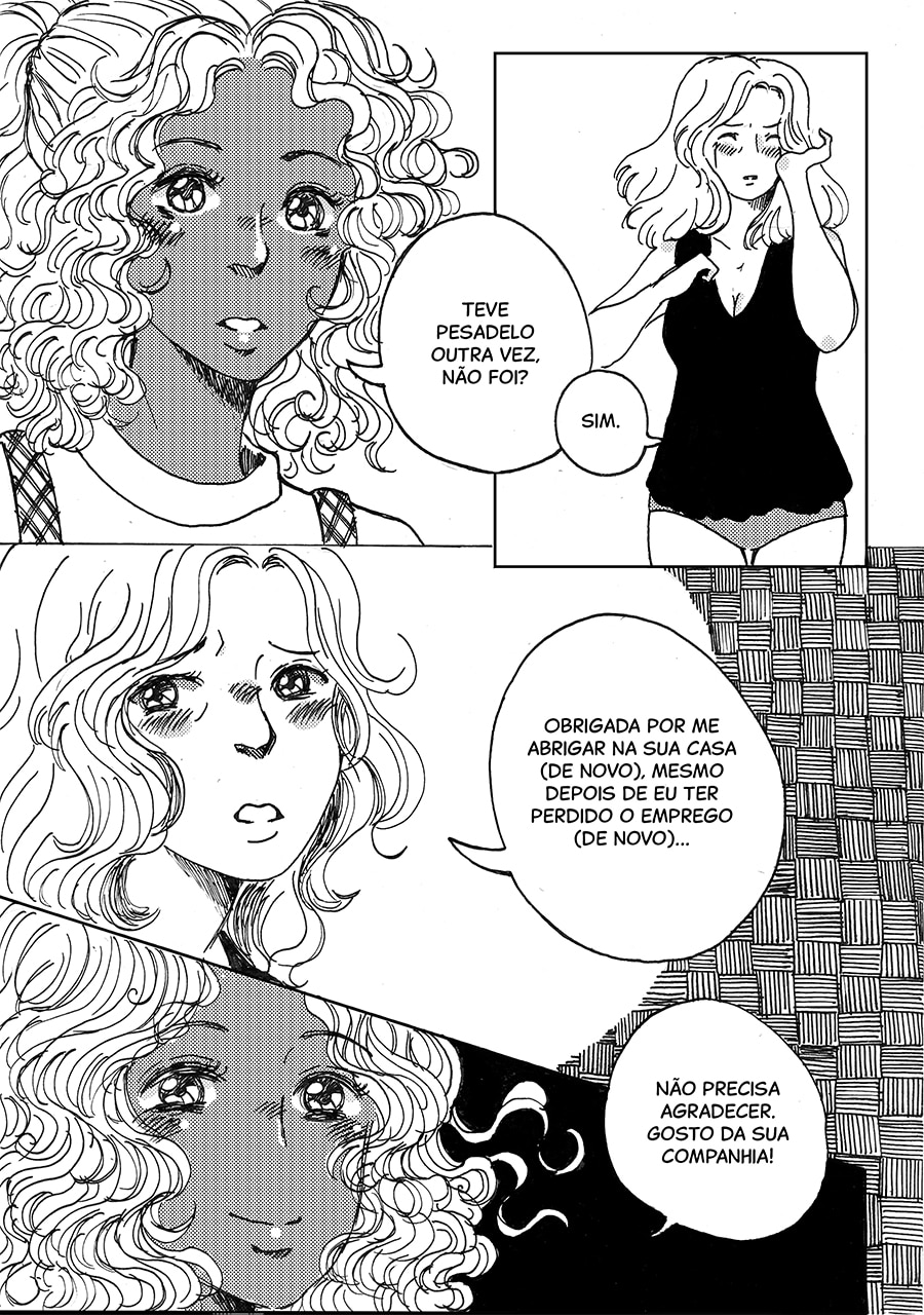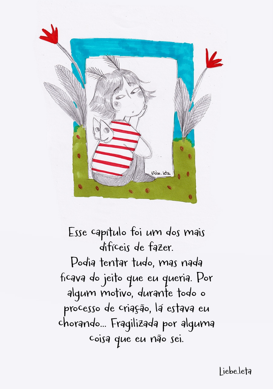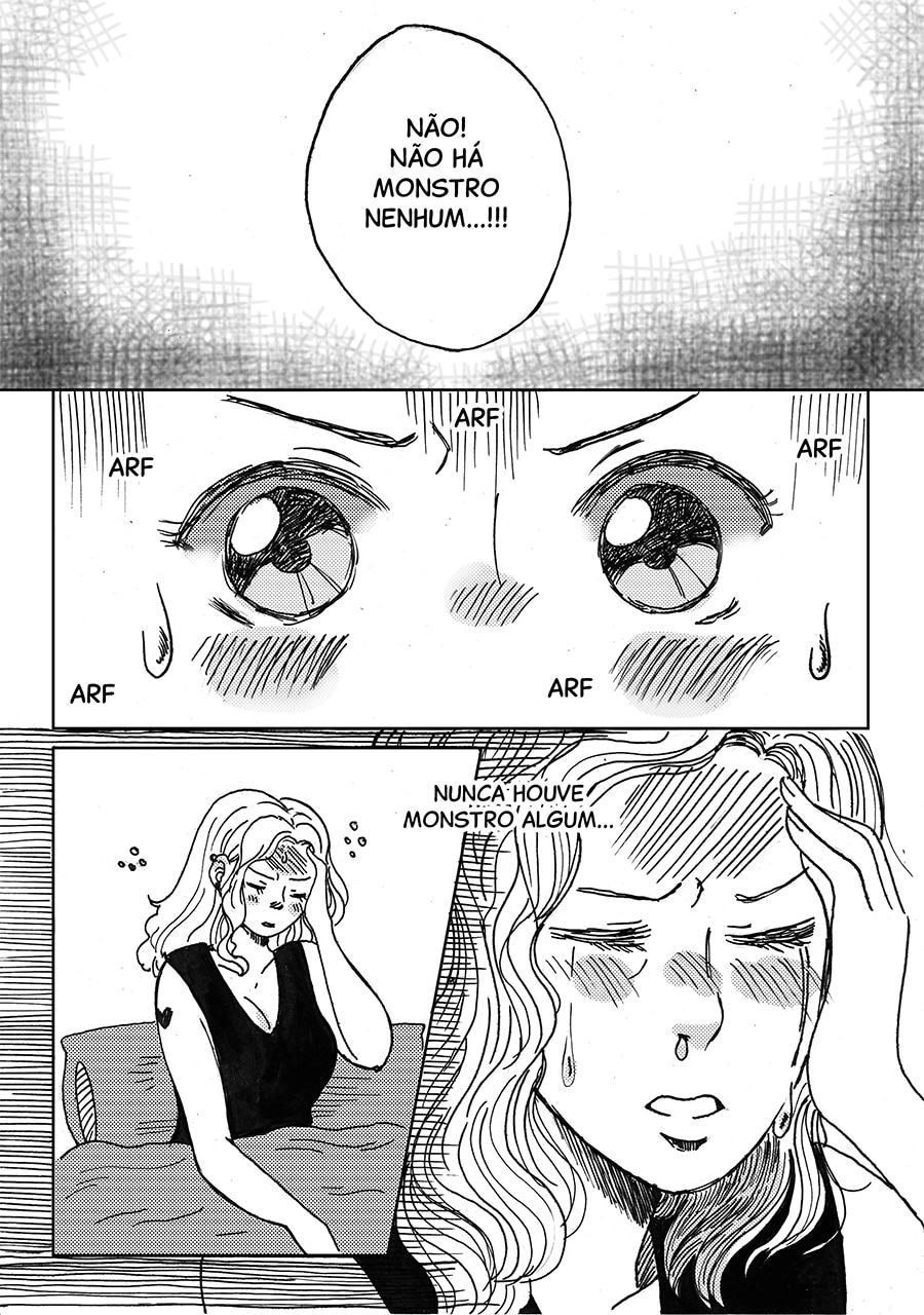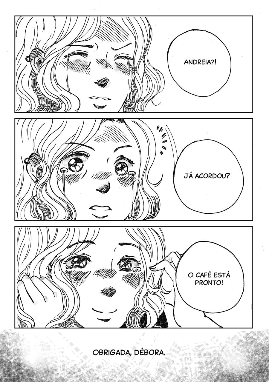 Nossa, gostei muito dessa pegada meio surrealista desse capítulo, ficou muito legal e interessante de ver e ler, além do traço lindo!♡ Gostei muuito também de como o pesadelo da Andreia foi retratado com um formato e "vibe" de livro infantil, um pesadelo traumático disfarçado de sonho inocente de criança!