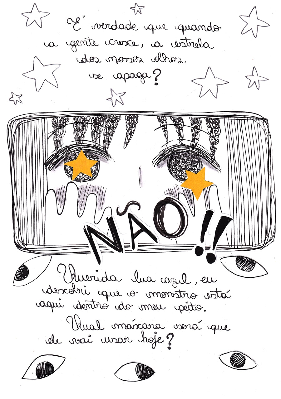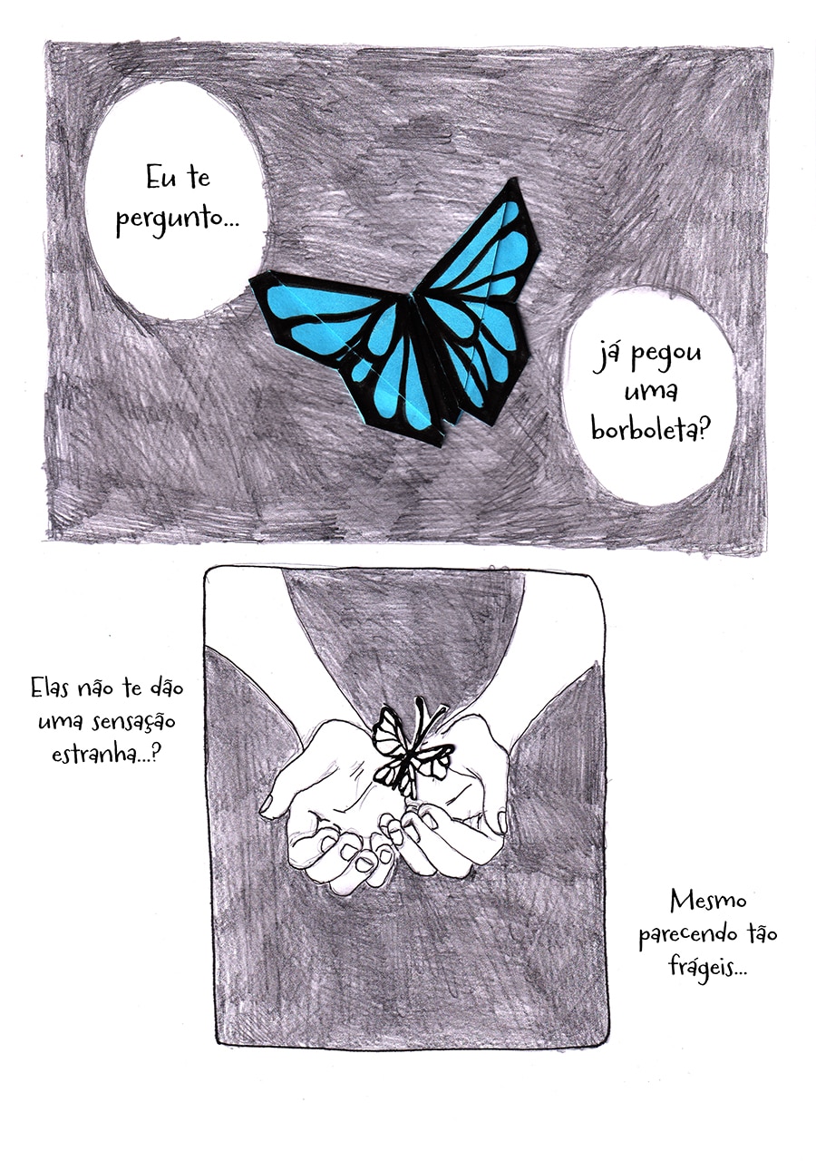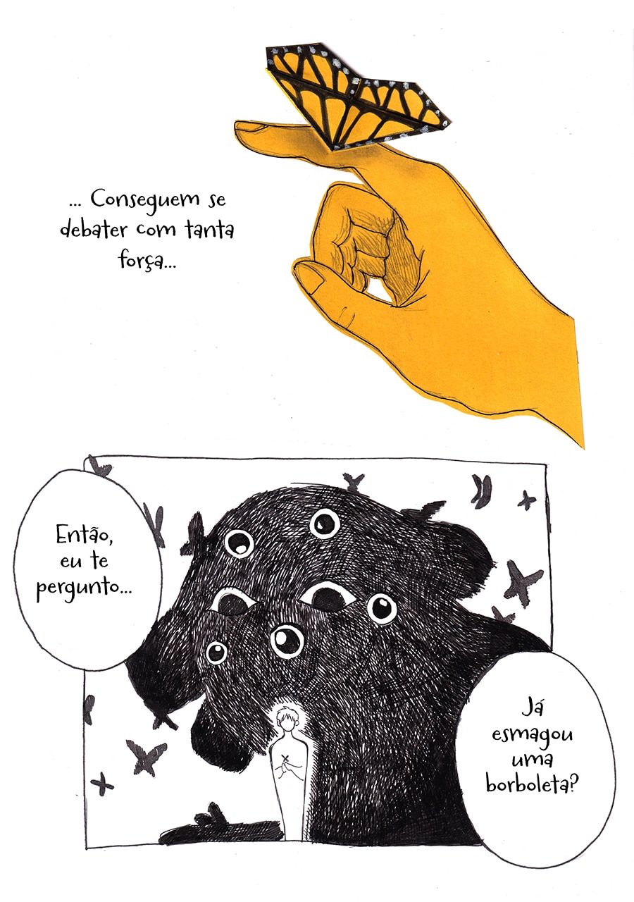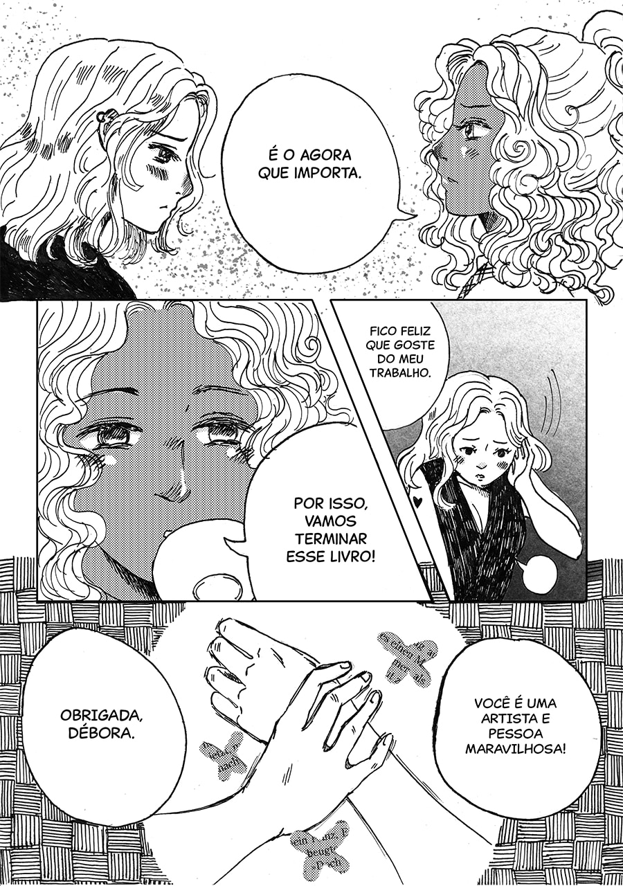 Nossa, gostei muito dessa pegada meio surrealista desse capítulo, ficou muito legal e interessante de ver e ler, além do traço lindo!♡ Gostei muuito também de como o pesadelo da Andreia foi retratado com um formato e "vibe" de livro infantil, um pesadelo traumático disfarçado de sonho inocente de criança!