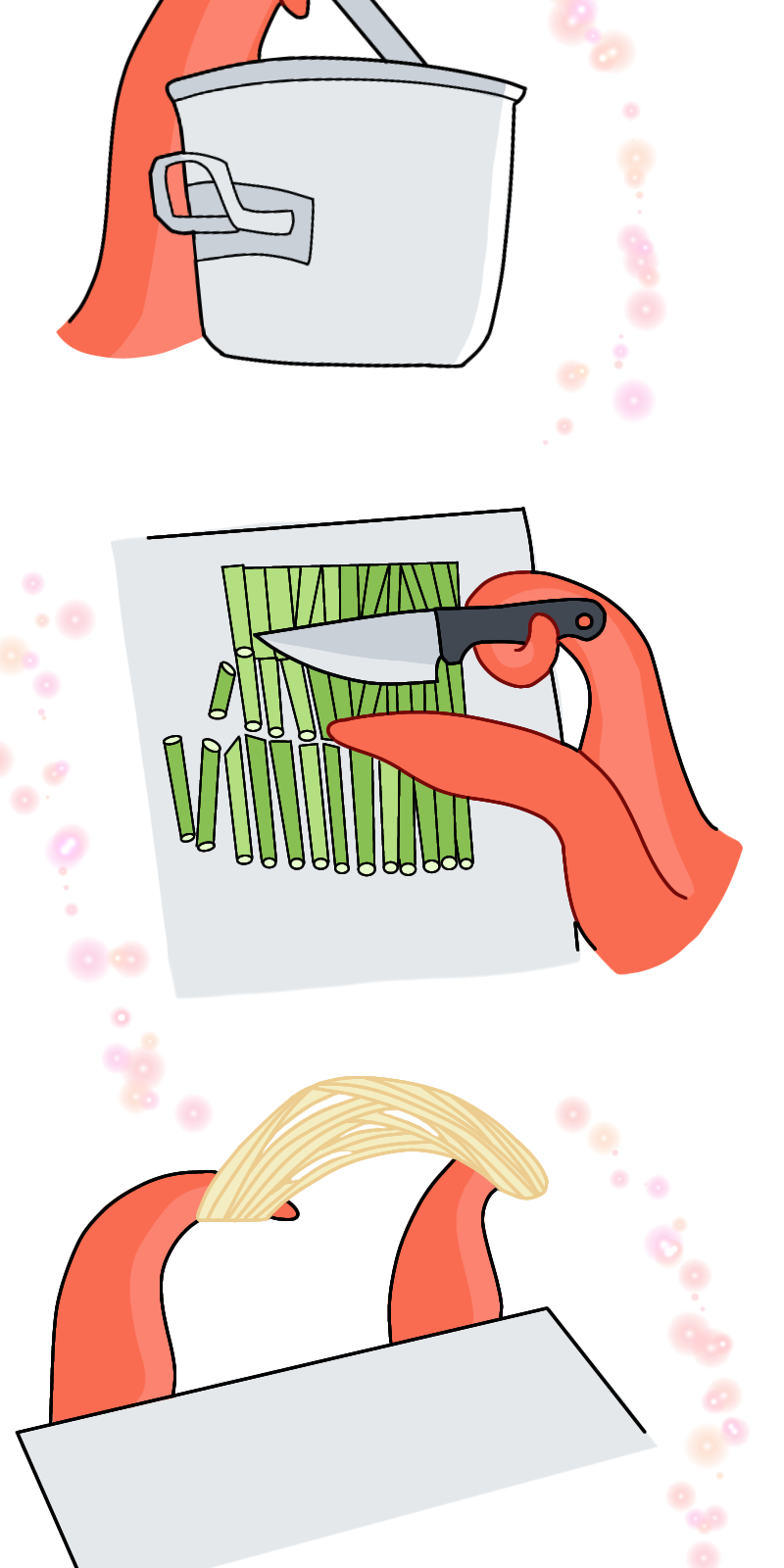 A very short comic each episode, about a Kraken, Kenjie Krakensworth who ascended from the deep sea and Noa Ando, who inherited his late grandfather's Ramen restaurant. Read their chaotic everyday life as together, they will learn how to manage the shop.