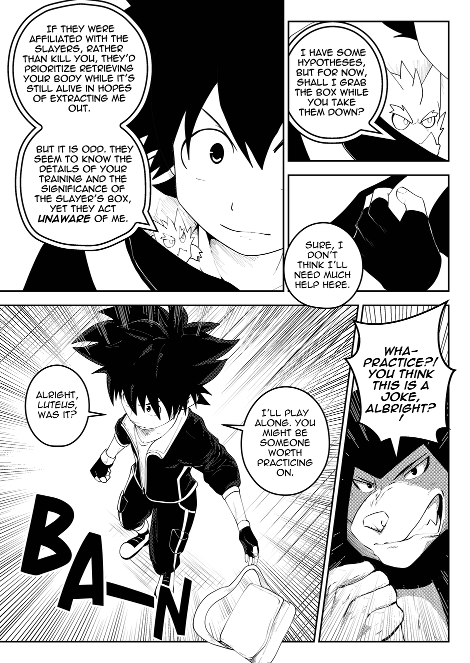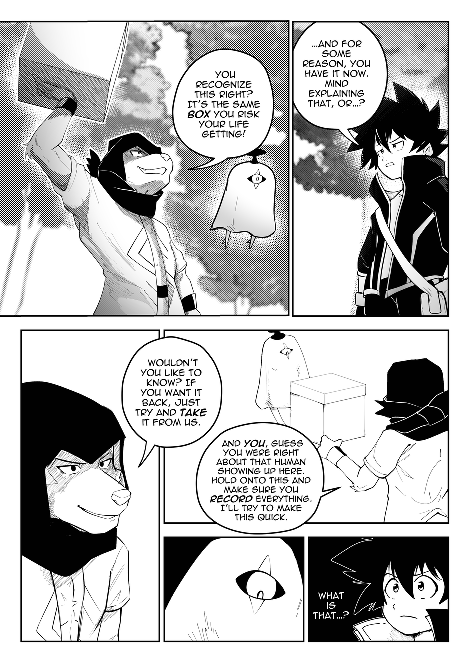 This took about seven months to draw out, which I consider an achievement since the chapter before that took almost a year. Now that Luteus has been unhooded, I can finally say this: Along with generally finding smaller, skinnier bodies more difficult to draw (especially with anthros); drawing Luteus with his hood up is the most frustrating part of drawing the character. It is so hard to make it look good and it's difficult to find good references for that. So, I'm glad I can finally start drawing him without his hood