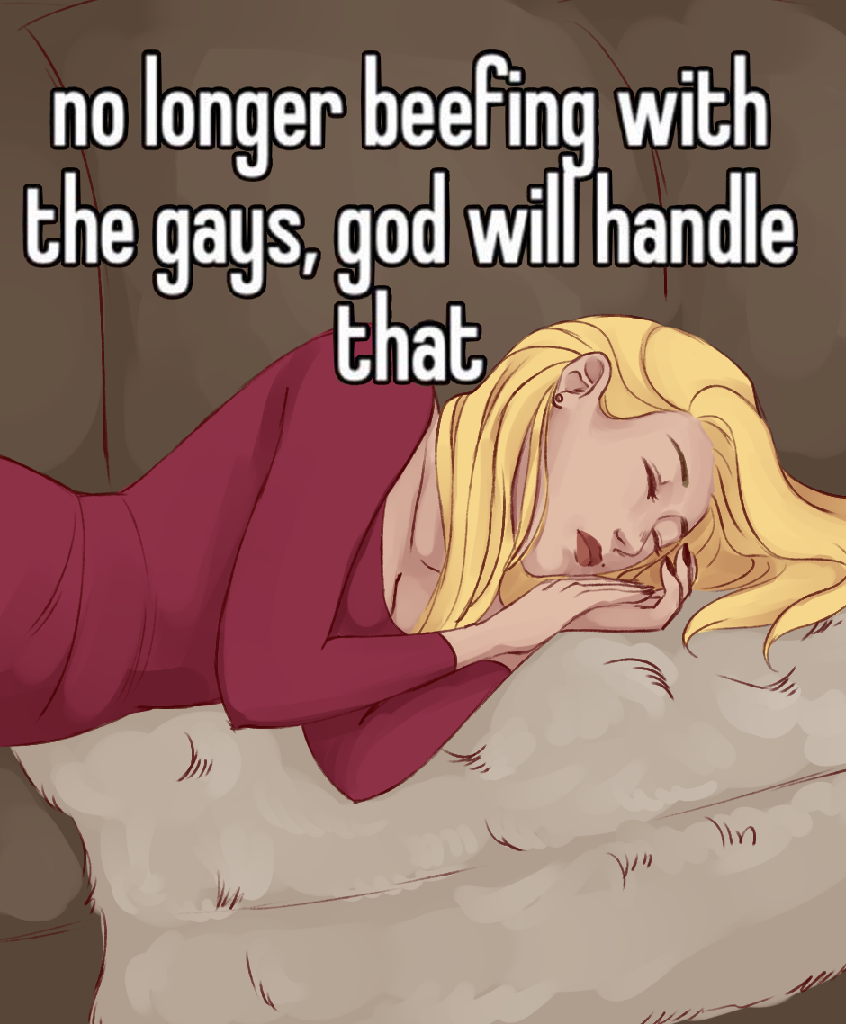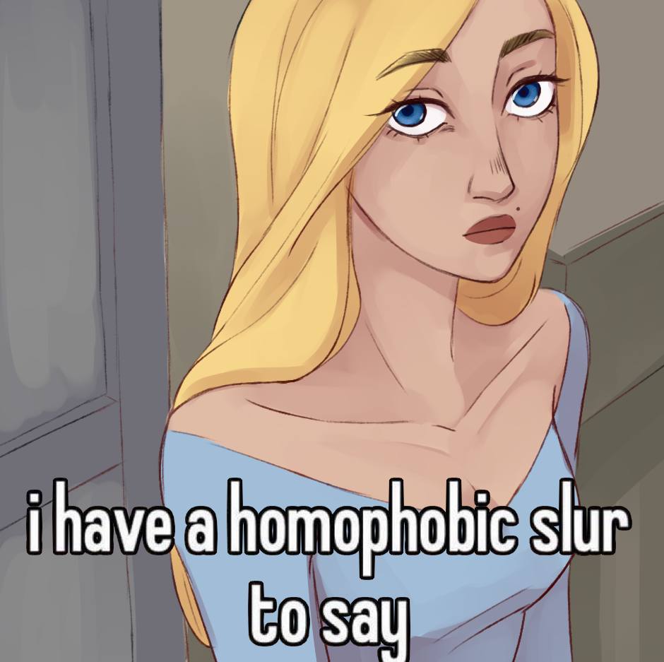 i think i will make it a tradition to draw catherine as that homophobic dog meme