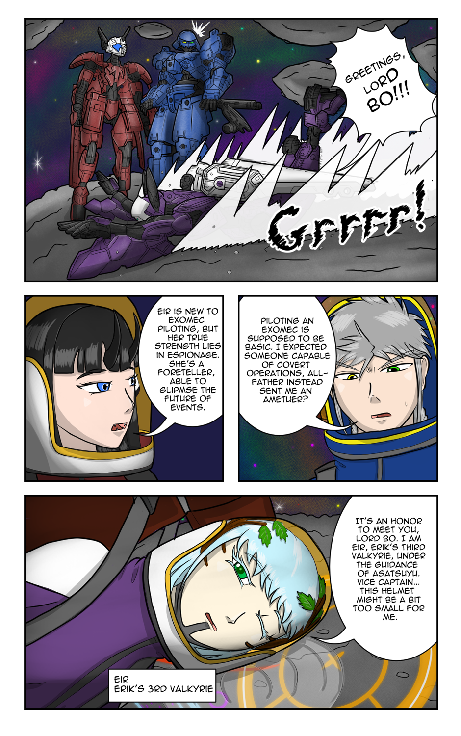 Ato and Mia met Ele for the first time, while Bo Stormhold observing at a distance while waiting for his father's Valkyrie to arrive.