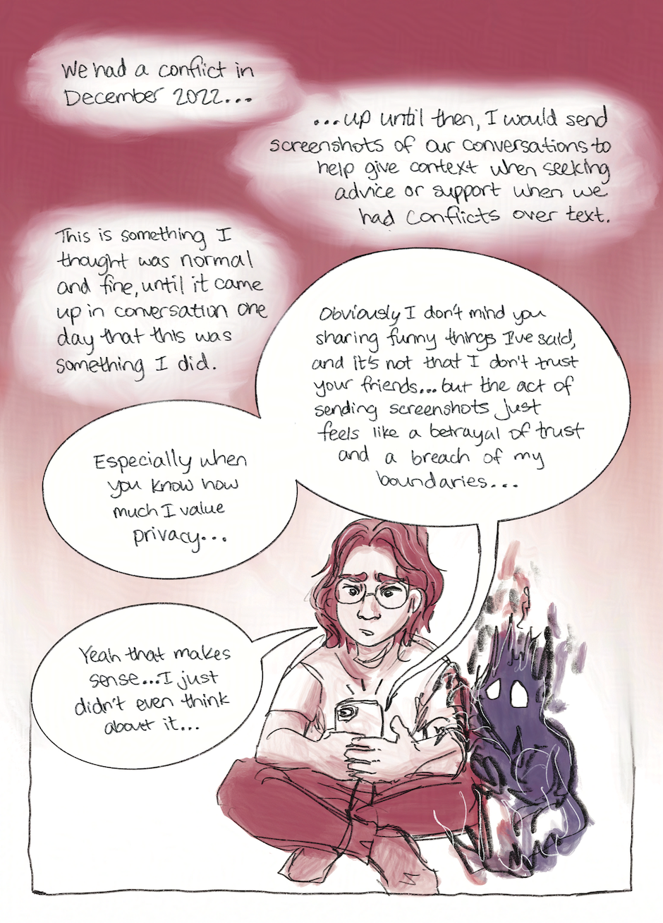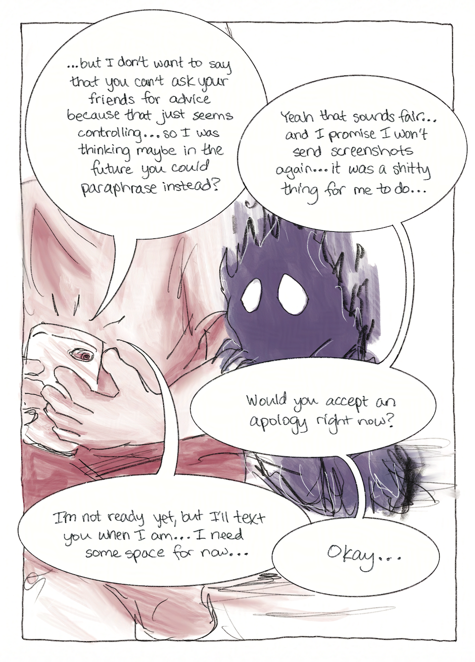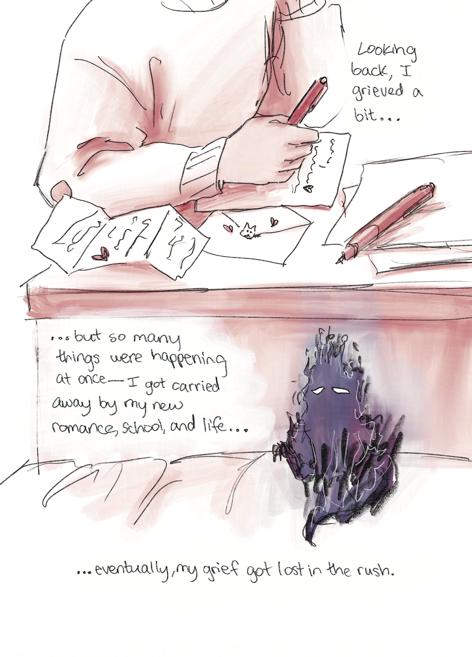 A graphic memoir that features Inkwell, a character who represents the most emotional, traumatized, and sometimes subconscious parts of me. With him, I delve into my tumultuous relationship with my father and the impact of a painful break-up, exploring how the past influences my current struggles with moral perfectionism, care, and activism.