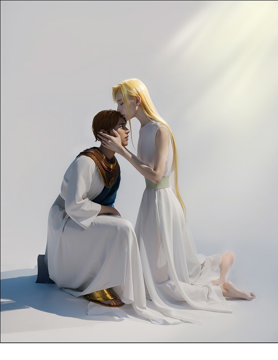 When I was young, I was infatuated by crossed back mangao, so I always want to make a BL crossed manga. The bottom is a modern man who crossed back to ancient Egypt. He is in poor health. The top is Thutmose III of the 18th dynasty in ancient Egypt. Because the story is fictional, and I am sure I will make mistakes in historical materials, so pls look it like a story in parallel time and space. This manga is made with blender+photoshop+ai. Hope you like it.