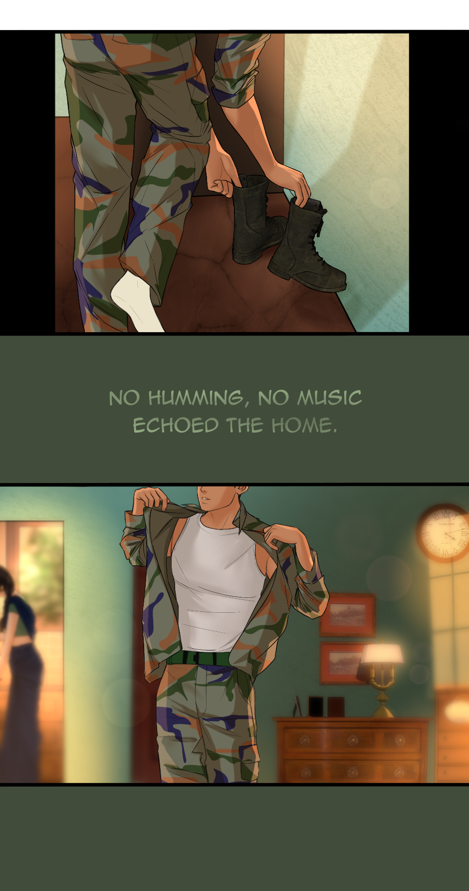 omg i love this. the art is so precise and beautiful. even the backgrounds have a lot of detail and nice lighting. the characters are drawn beautifully too. thank you for making this.