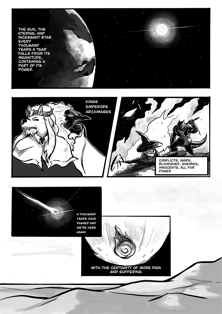 A mage is separated from her friends during a high ranked mission on the desert of Sootara, agonizing in death, she is found by an adventurer and they decide to carry on the mission to find the most dangerous relic in all the world: the millennium sun, a tear from the sun that is said to harness the power of the sun itself.