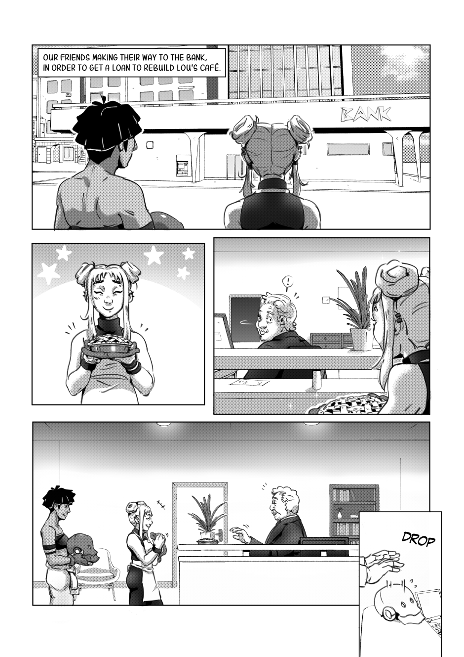 After the explosion of Lou's café, our friends go to the bank in order to get a loan...