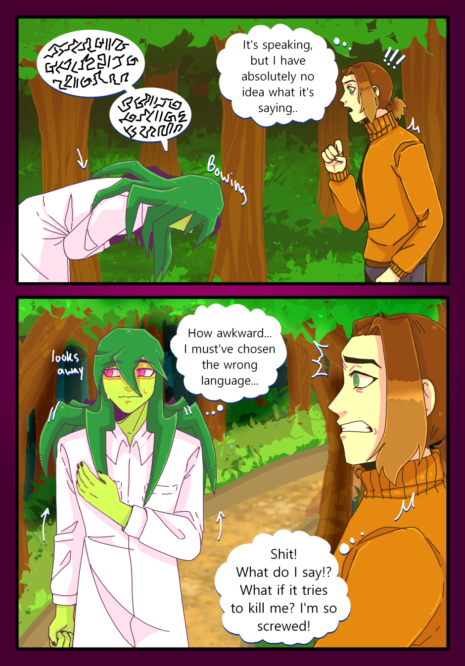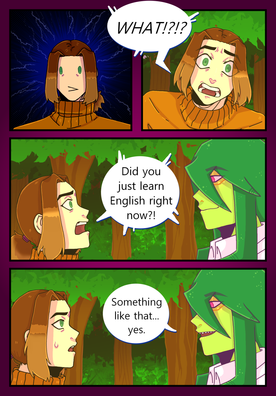 So here is the next installation of chapter 2. Only one more to go! Yay! I swear if I could work faster I would. I'm starting to wonder if pulling late nights would help my page rate, but I am addicted to sleep. Frankly it's simply not worth it to me to stay up until like one in the morning. Maybe one day... Anyway, please give this a like and a subscription if you like what you see. Have a wonderful day, night, or whenever you're seeing this dear readers!