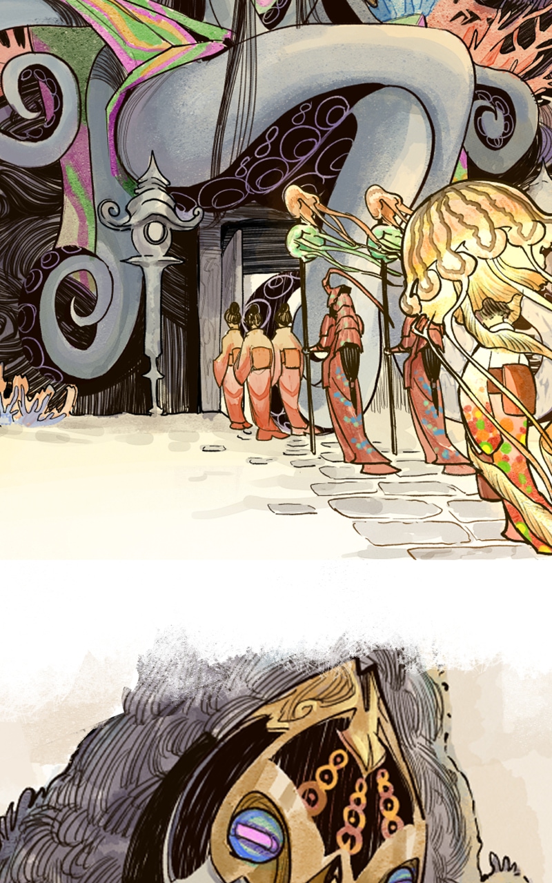 Welcome to the Kingdom of Mermaids, a realm filled with wonder, spirituality, and a hint of cruelty. Dive into this world through the seven anthologies of the characters: Mecha Mermaid, Eel Witch, Seahorse Racer, Mantis Shrimp Princess & The Clownfishes, Lionfish Dancer, Octopus Cook, the Sardine Warriors and Knights of Atlantic. Each character reveals their unique culture and rituals. Follow their fates and immerse yourself in the bizarre fantasy beneath the sea.