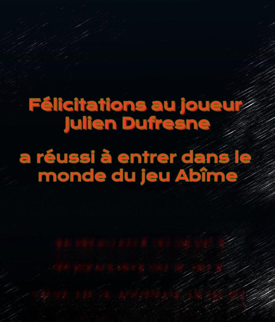 Julien Dufresne, Créateur de jeux indépendant, n'aurait jamais pensé se faire tuer maintes fois par le protagoniste masculin du jeu, Abîme. La seule façon de sortir de ce cercle vicieux de la mort est de traverser dans le jeu et d'élever Abîme en bonne santé. Julien : Non seulement je dois survivre à ce jeu de survie ! Maintenant, je dois aussi élever un enfant ?!?