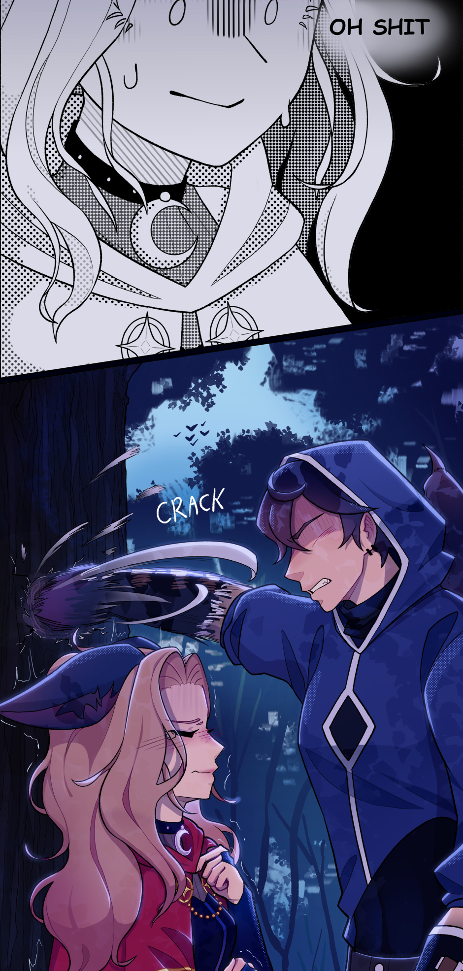 Can I just say how dumb I am? I decided to re-panel the comic after I started colouring AND shading. (All the diagonal lines are re-done)