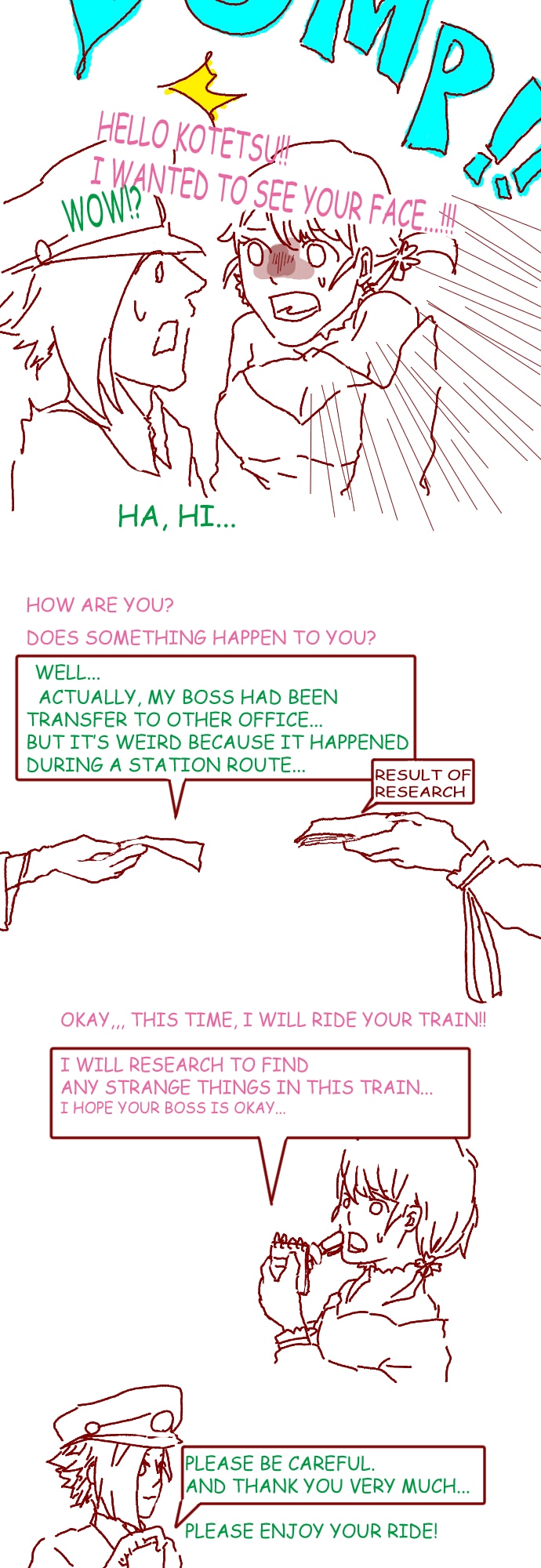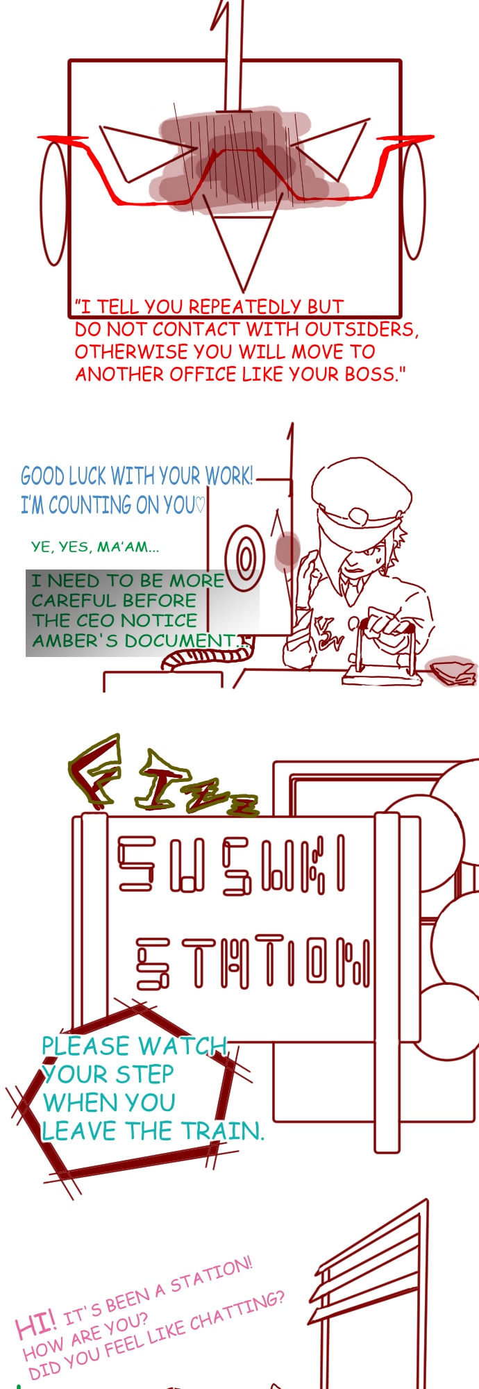 A man who is a train driver craved for changing his job, started hand over to a new employee needs better salary. The train company had a strange rules, "Do not contact with outsiders", "Do not go out of the train".