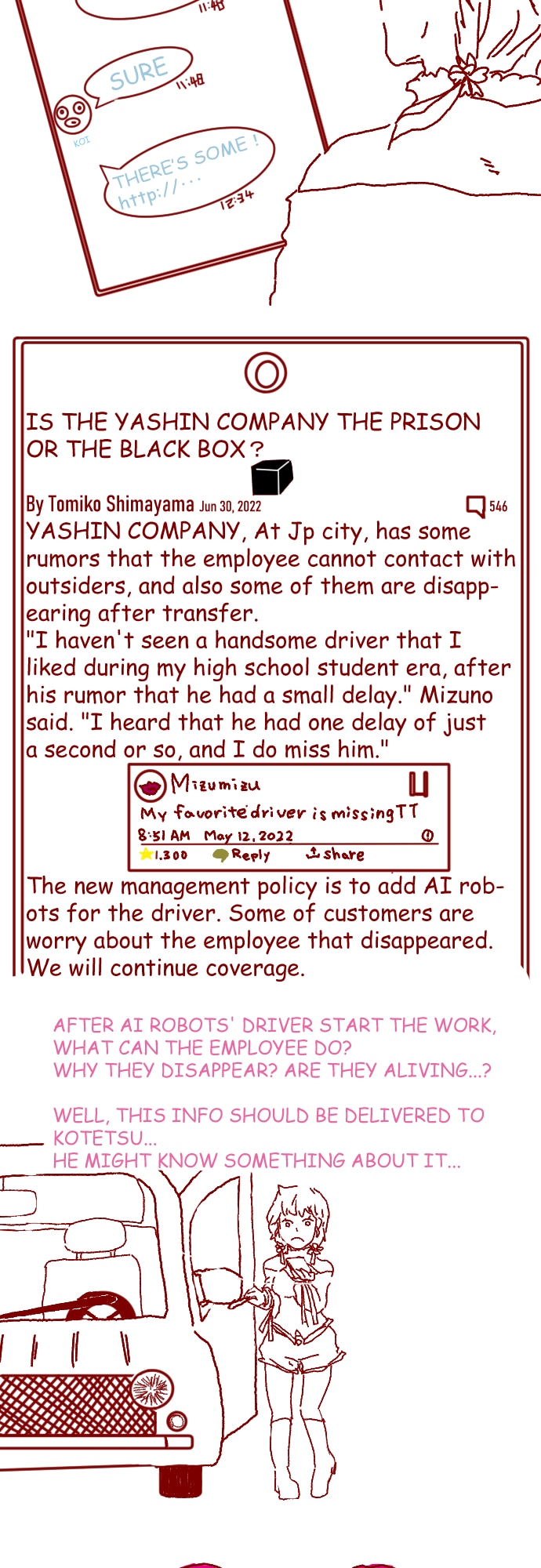 The new driver, KOTETSU is interested in researching his mother's health and his company's darkside. He decided to cooperate with the newspaper reporter, AMBER. But It means the company's rule "Do not contact with outsiders" were broken by him. The CEO noticed it and tried to stop him and...
