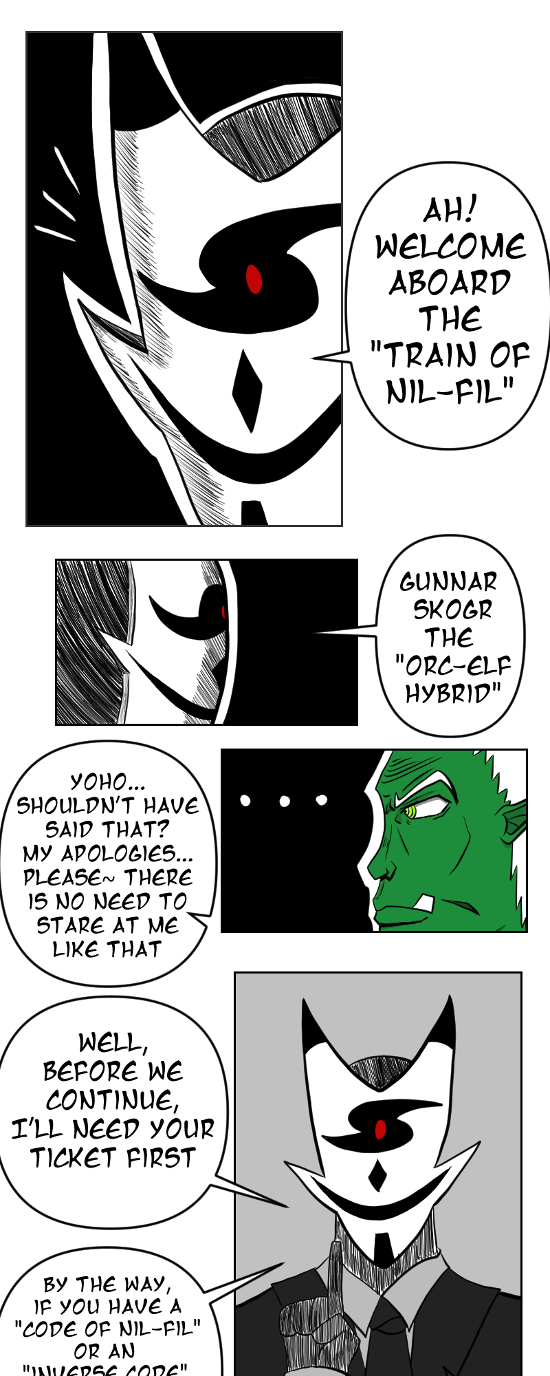 Ticket please! Gunnar steps into the train and encounters a strange looking ticket inspector... who is he and just what exactly is NiL-FiL?
