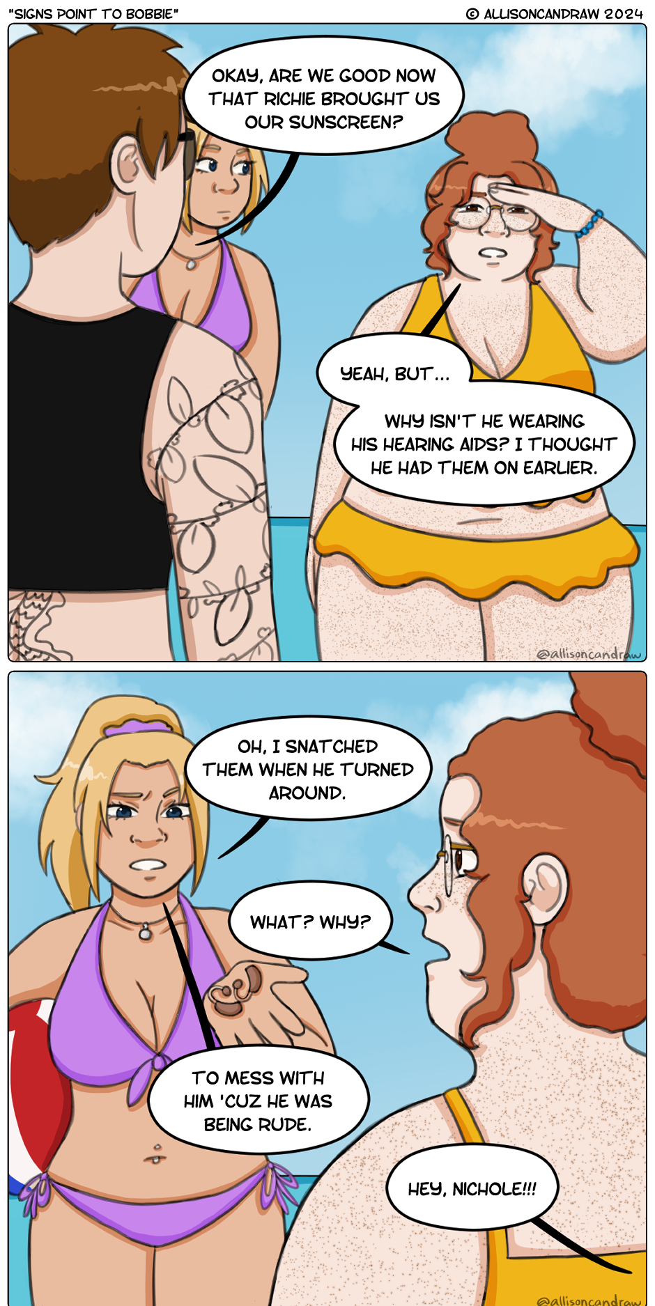 R.J. and Nichole's sibling rivalry is still going strong... Check out my Patreon for early access to comics, WIPs, and more! https://www.patreon.com/allisoncandraw My links/socials: https://linktr.ee/allisoncandraw