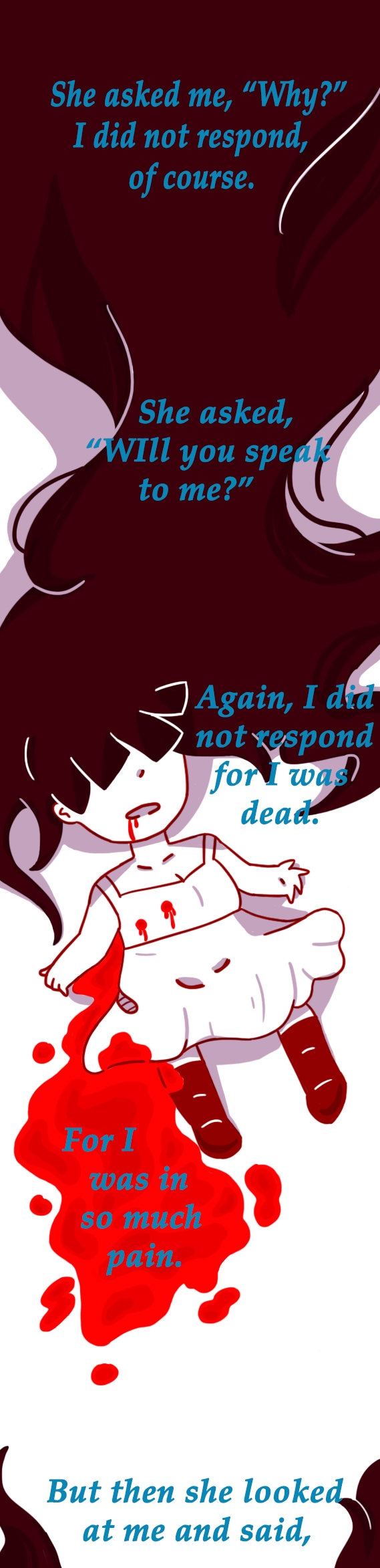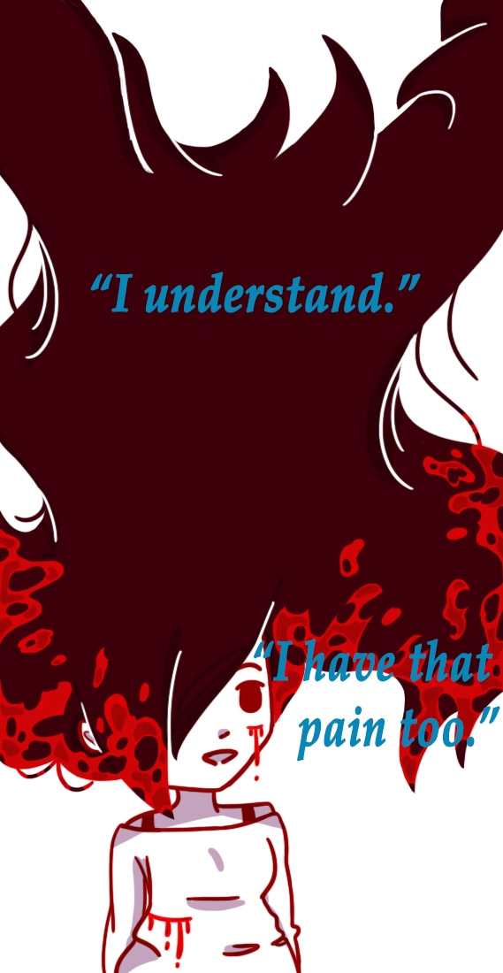I'm sorry, I just.. I've been a little sad lately. At least I cheered myself up while drawing the blood. I don't know, blood is fun to draw. So is hair... Again, sorry I don't mean to hurt anyone's feelings.