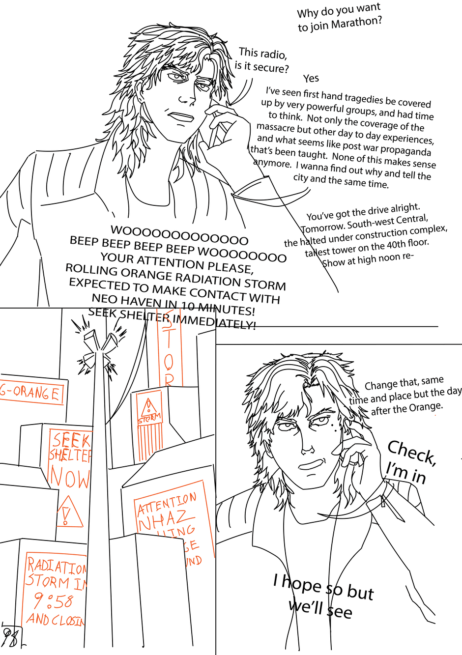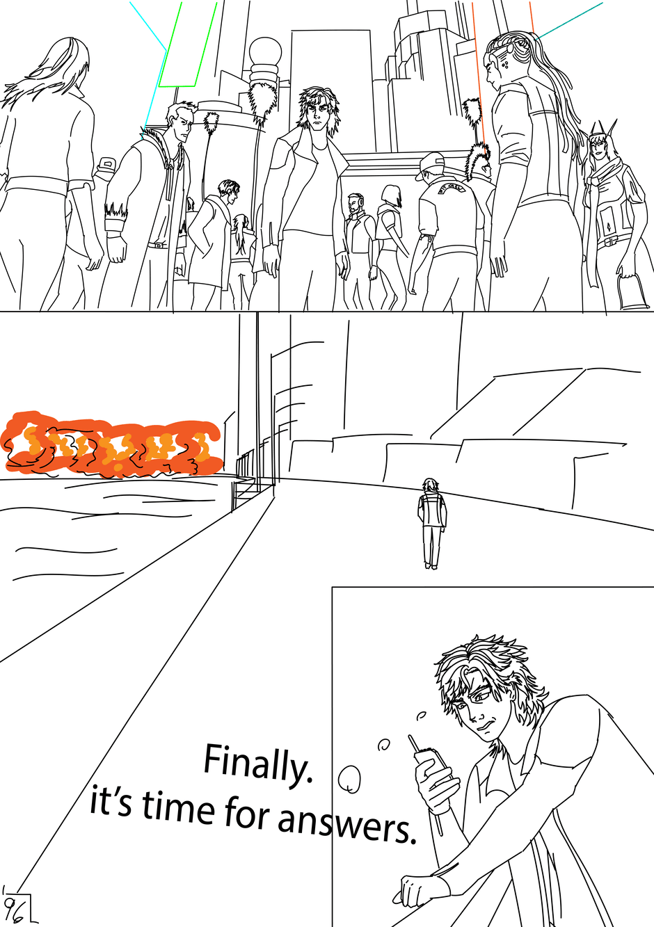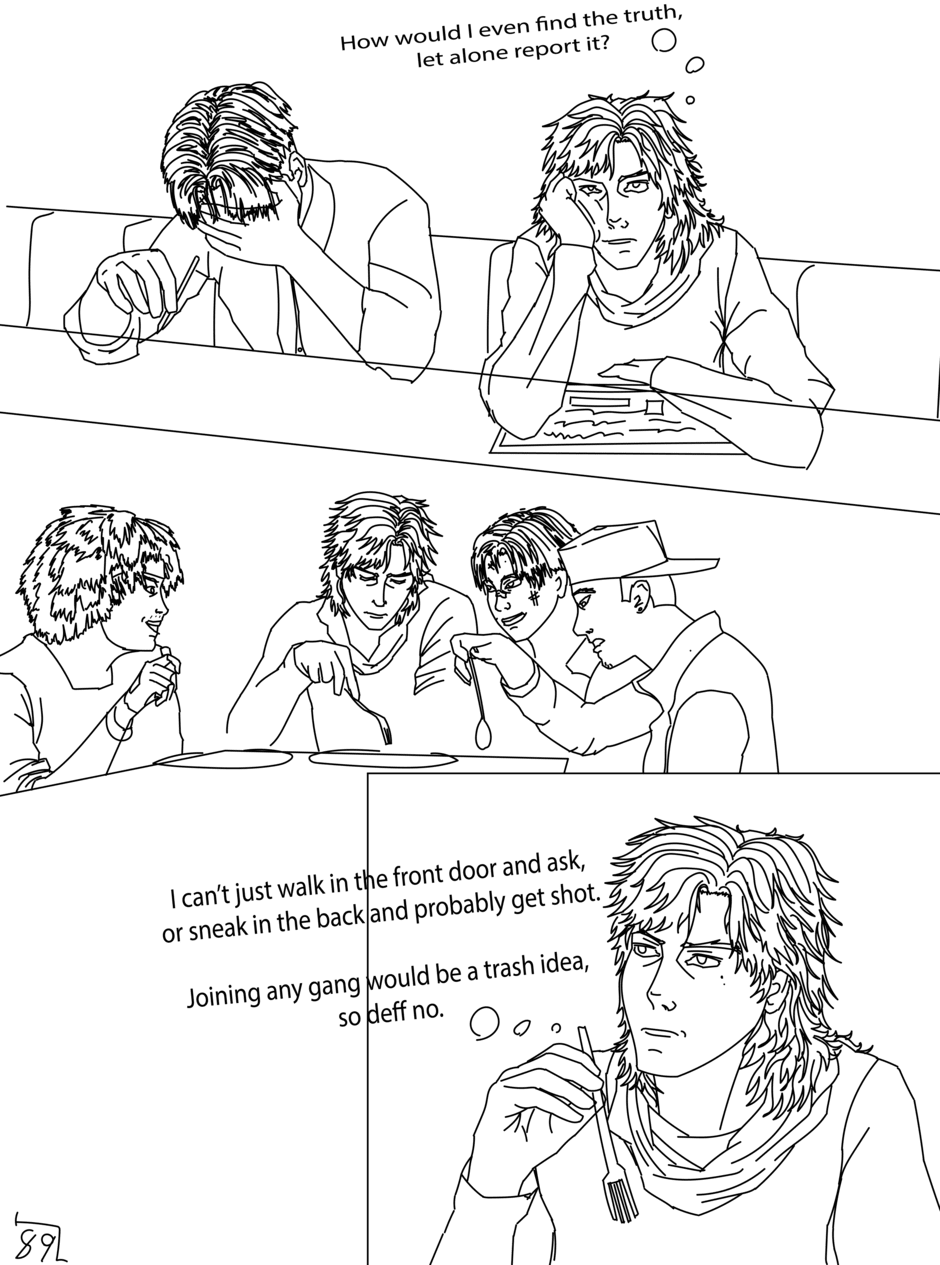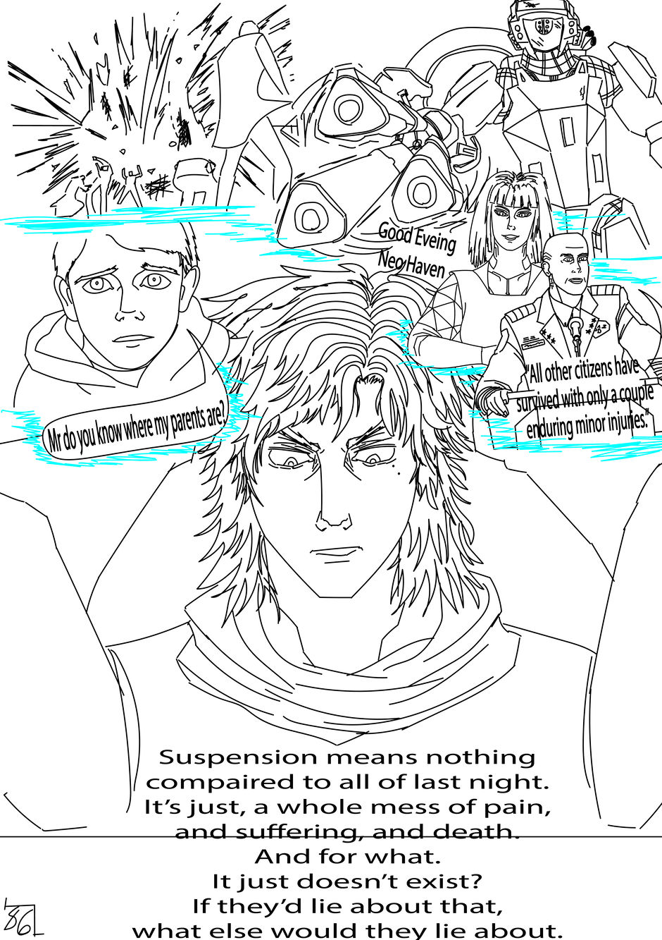 On The Edge is created, written, and drawn by Brendan JG and is about a futuristic World that managed to avoid annihilation in Third World War but has rebuilt into a new era of technology and politics. The story follows Gray Vallazka in Neo Haven, a city that was glassed under a nuclear bomb but was rebuilt into the largest city on Earth. Gray comes from wealth but preferred to be a punk who ignored his and the city's harsh problems until after surviving a traumatic terrorist attack, only to witness it get covered up. This public attack makes Gray desire to know the truth and has him joining a rebellious group. Gray's search for the truth will lead him into the underworld of Neo Haven making him encounter gangs, cyborgs, hackers, and more corruption than he could imagine. Is Gray on the edge of finding the truth or is he on the edge of his own death.
