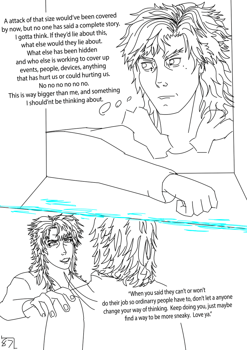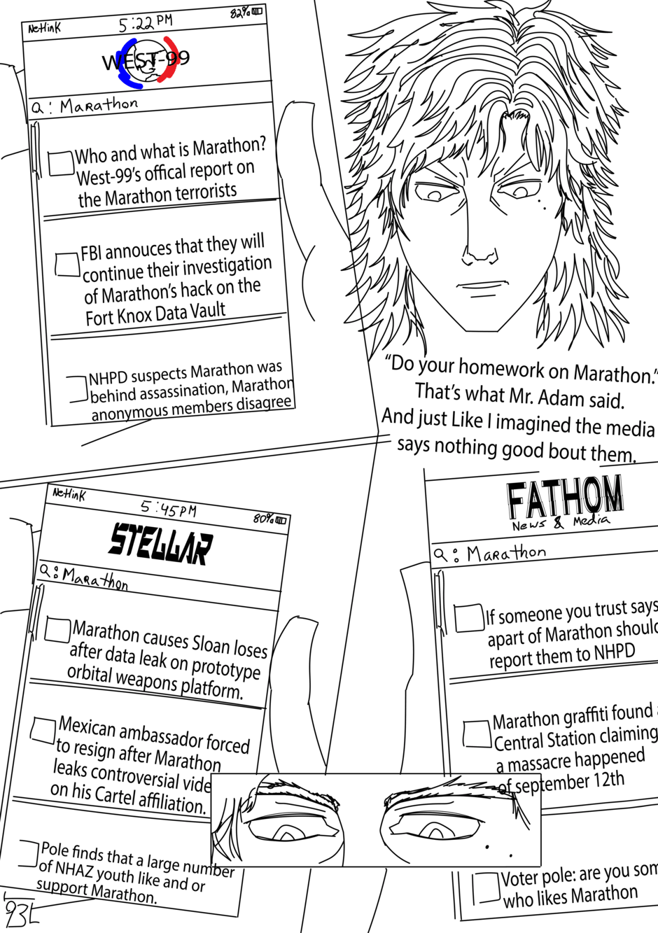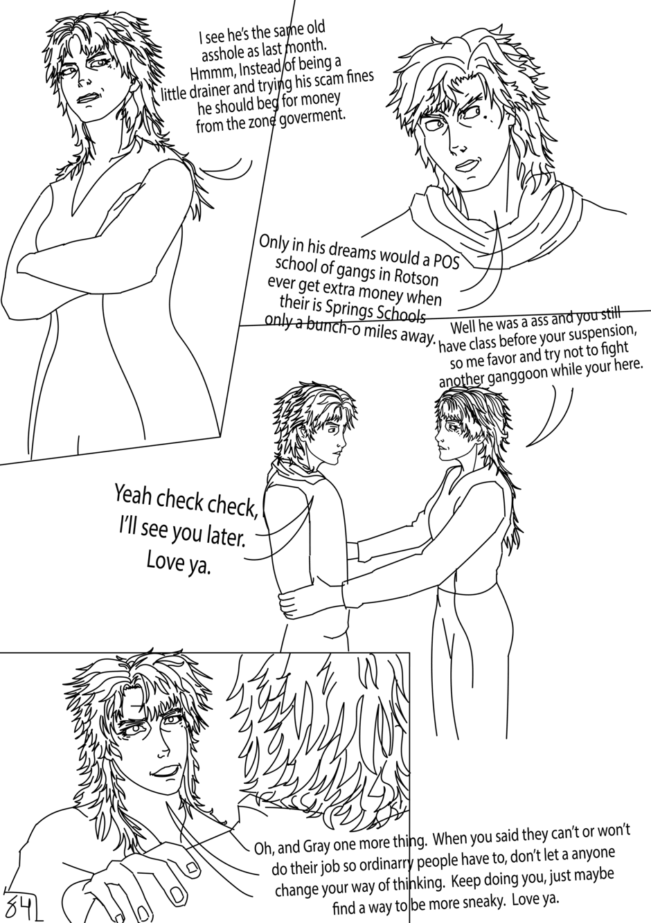 On The Edge is created, written, and drawn by Brendan JG and is about a futuristic World that managed to avoid annihilation in Third World War but has rebuilt into a new era of technology and politics. The story follows Gray Vallazka in Neo Haven, a city that was glassed under a nuclear bomb but was rebuilt into the largest city on Earth. Gray comes from wealth but preferred to be a punk who ignored his and the city's harsh problems until after surviving a traumatic terrorist attack, only to witness it get covered up. This public attack makes Gray desire to know the truth and has him joining a rebellious group. Gray's search for the truth will lead him into the underworld of Neo Haven making him encounter gangs, cyborgs, hackers, and more corruption than he could imagine. Is Gray on the edge of finding the truth or is he on the edge of his own death.
