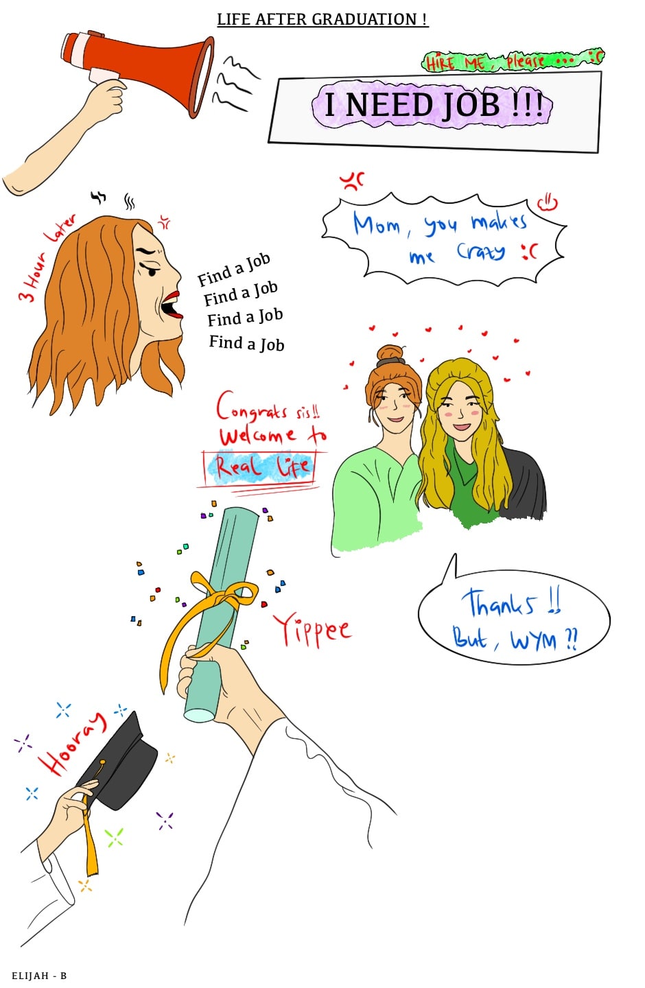 A few hours after graduation, and I had to face real life : 1. looking for a job 2. looking for a job And, What about you ? - B