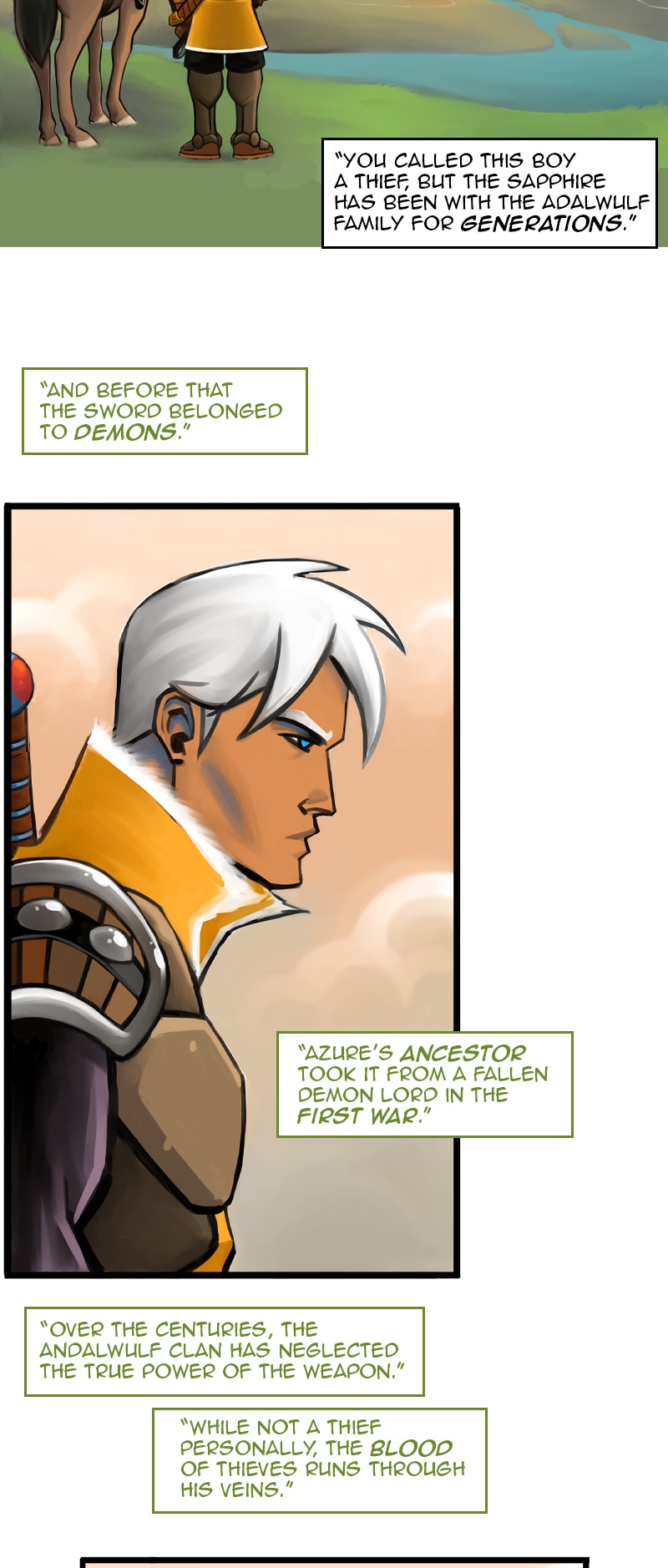 Azure Andalwulf is a young hunter seeking to make a name for himself in an enchanted world of monsters and mayhem. With friends at his side, and armed with his father's mystical sword, Azure fights to restore his father's legacy while creating a legend all his own.