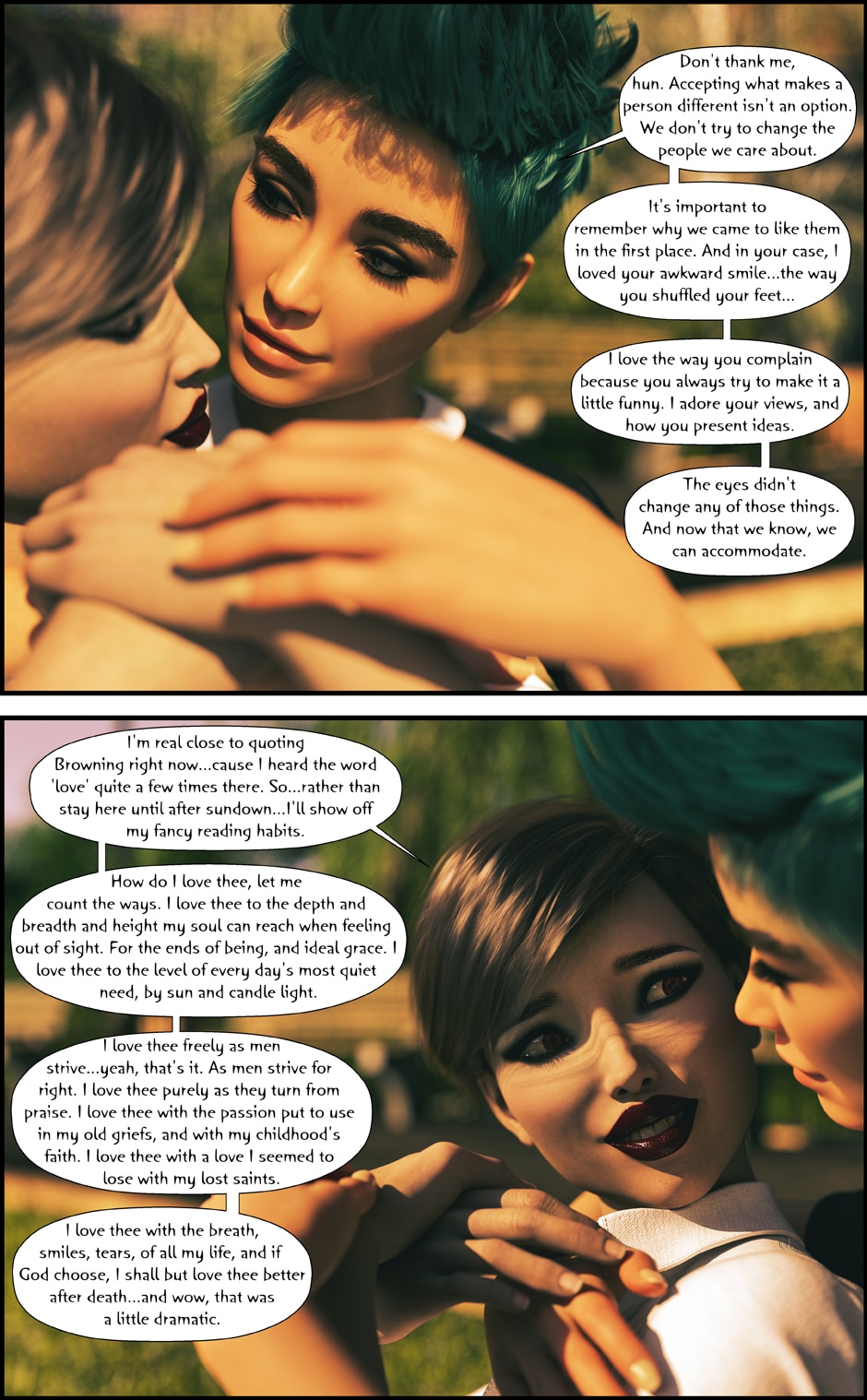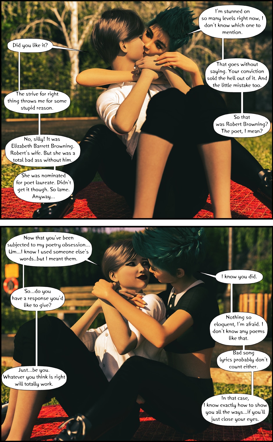 Connie and Morgan meet in Season 2 of Malevolence. They have an instant spark, but it's interrupted by Connie's unfortunate side effects of the events of Season 1. Despite that, they continue to have a bond, one which is profound enough for both ladies to acknowledge.