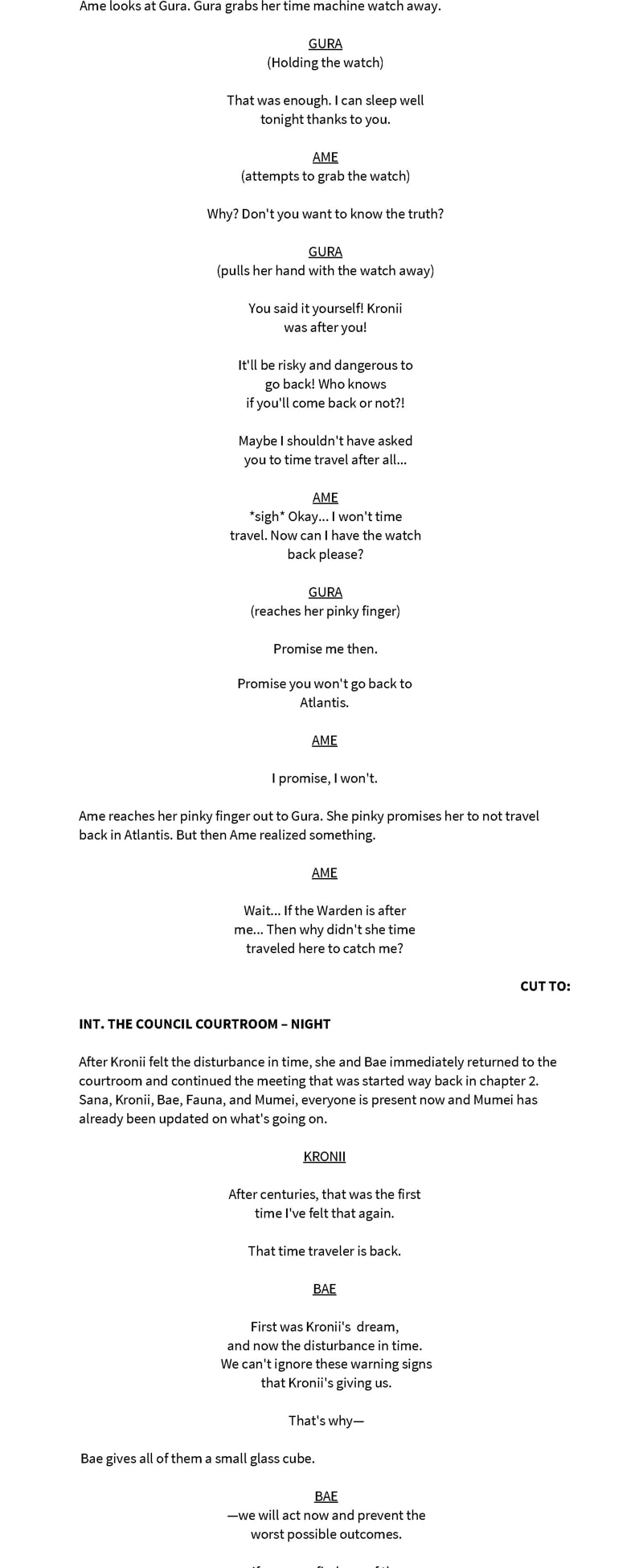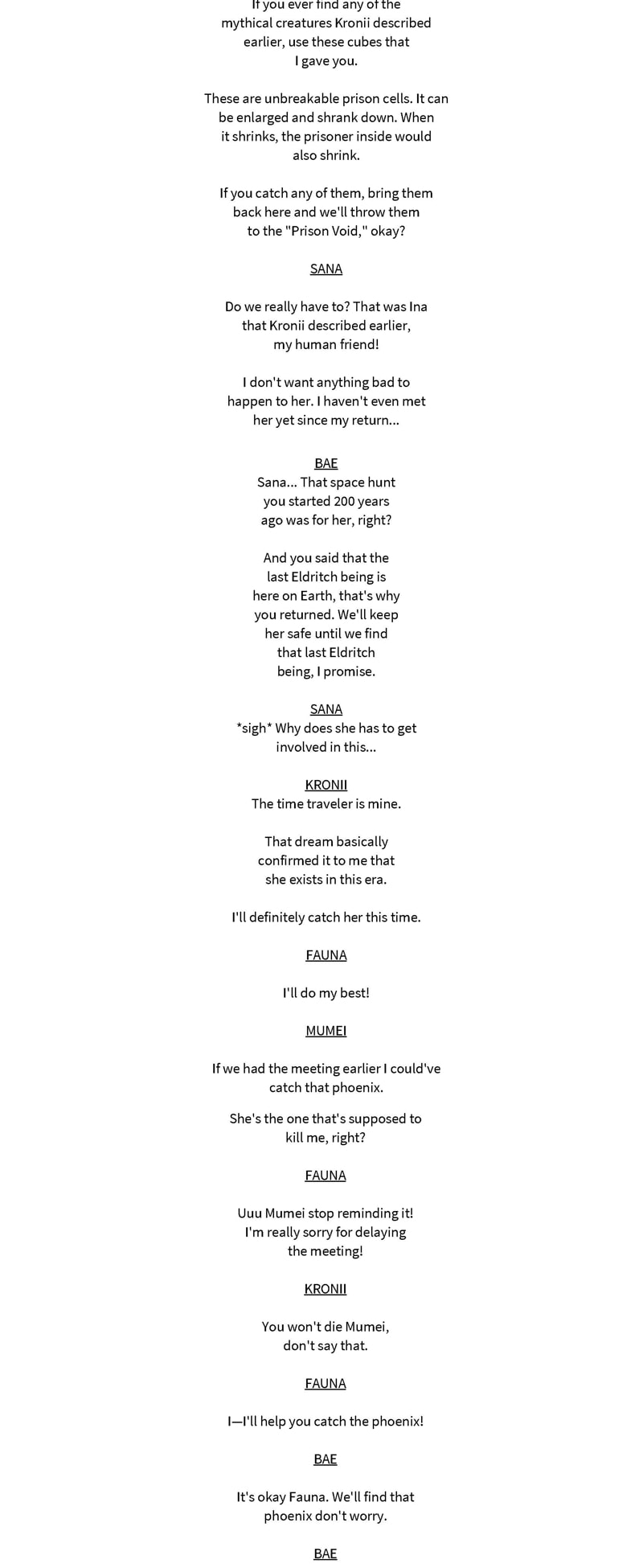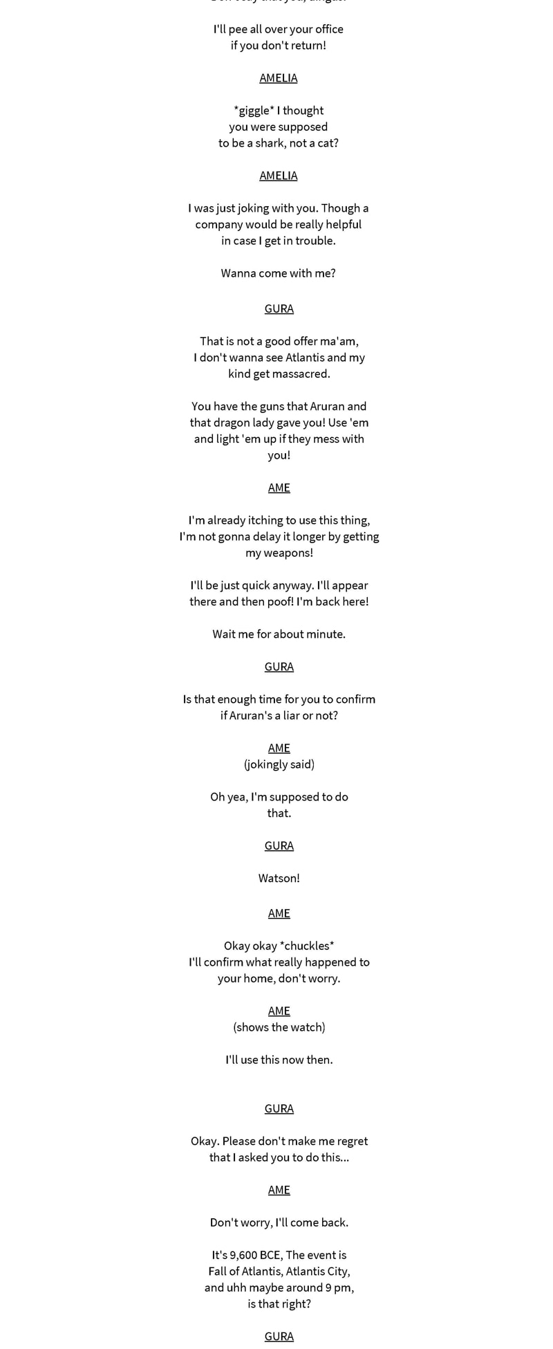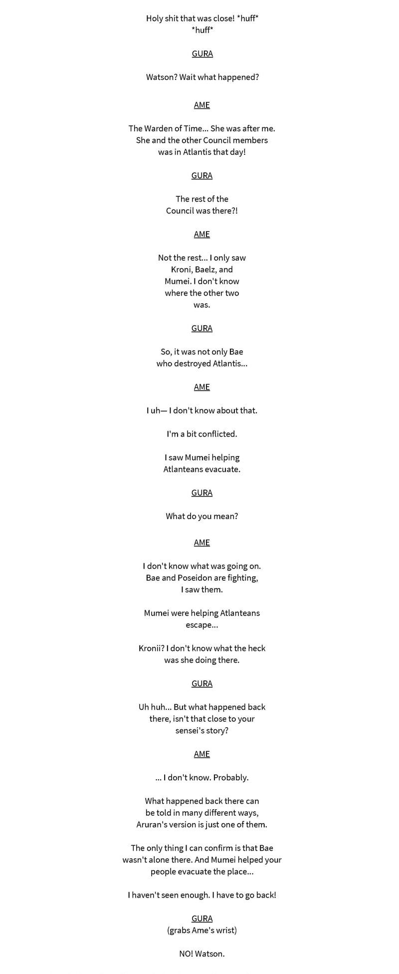 A hololive lore fan story. Amelia Watson was led to believe that the Council will destroy the world, so she and Gura decided to recruit the rest of the Myth members to fight them.