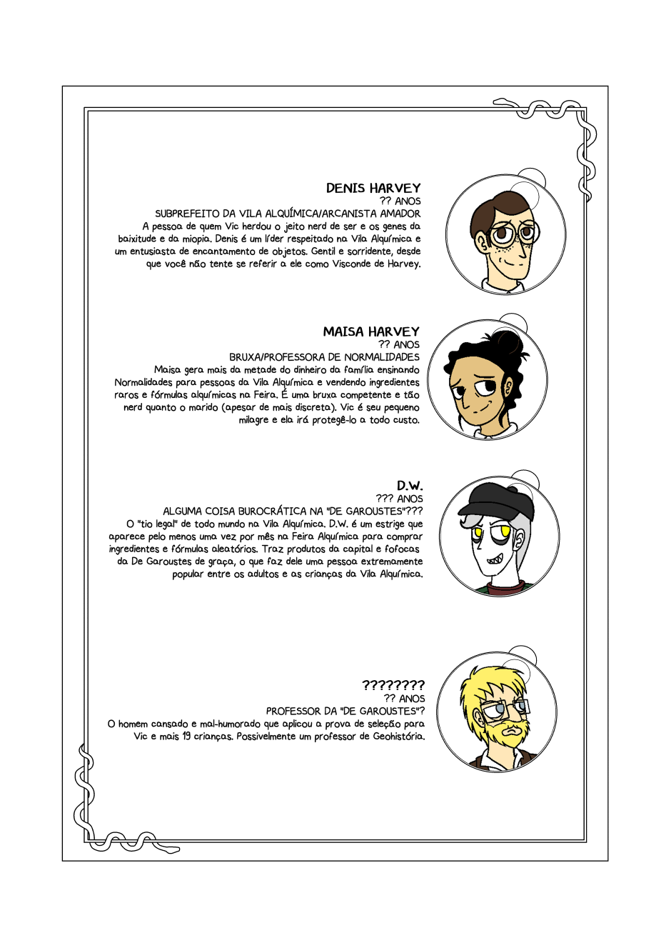 De tempos em tempos, vou atualizar os personagens. Talvez de cinco em cinco ou dez em dez capítulos? Veremos.