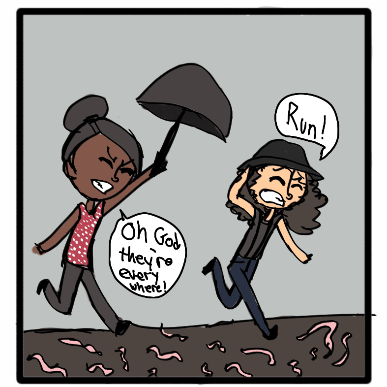 So glad I'm not the only one who hates seeing worms when it rains, I always watch the ground just to make sure I don't step on any. ick x.x