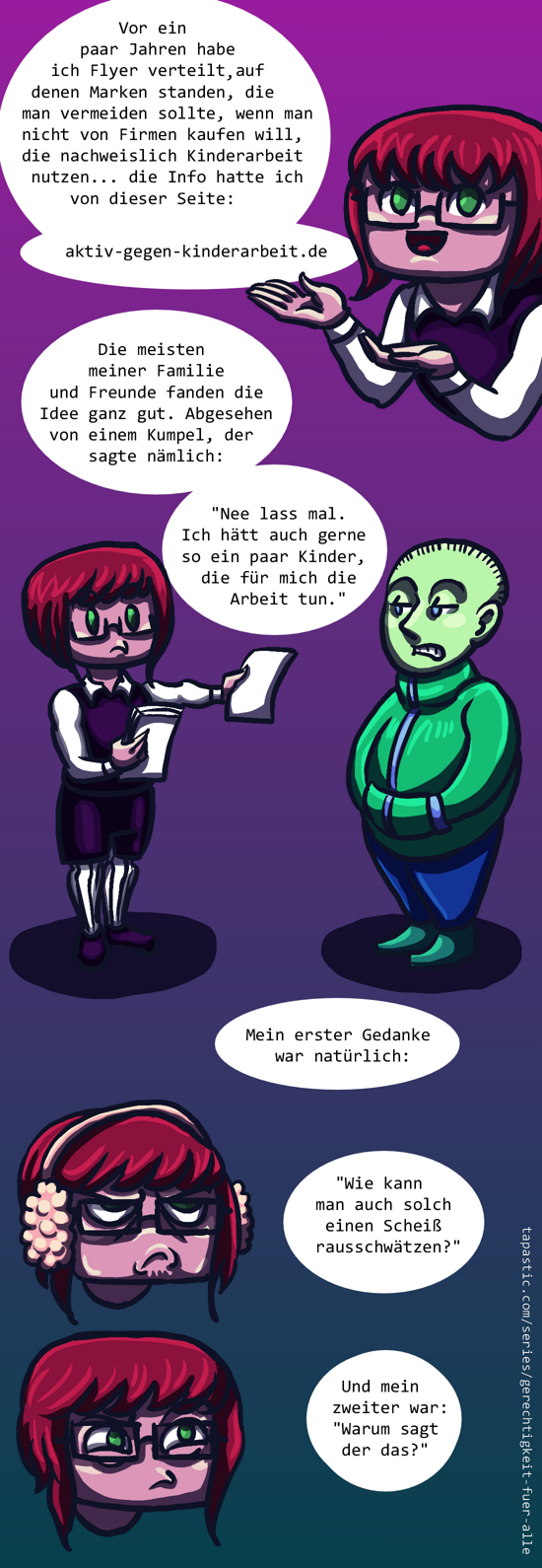 Natürlich ist mir klar, dass die Aussage dieses Kumpels als Witz gemeint war - aber dann wiederum steckt in Witzen auch ein Körnchen Wahrheit. So oder so: Kinderarbeit interessiert ihn nicht.