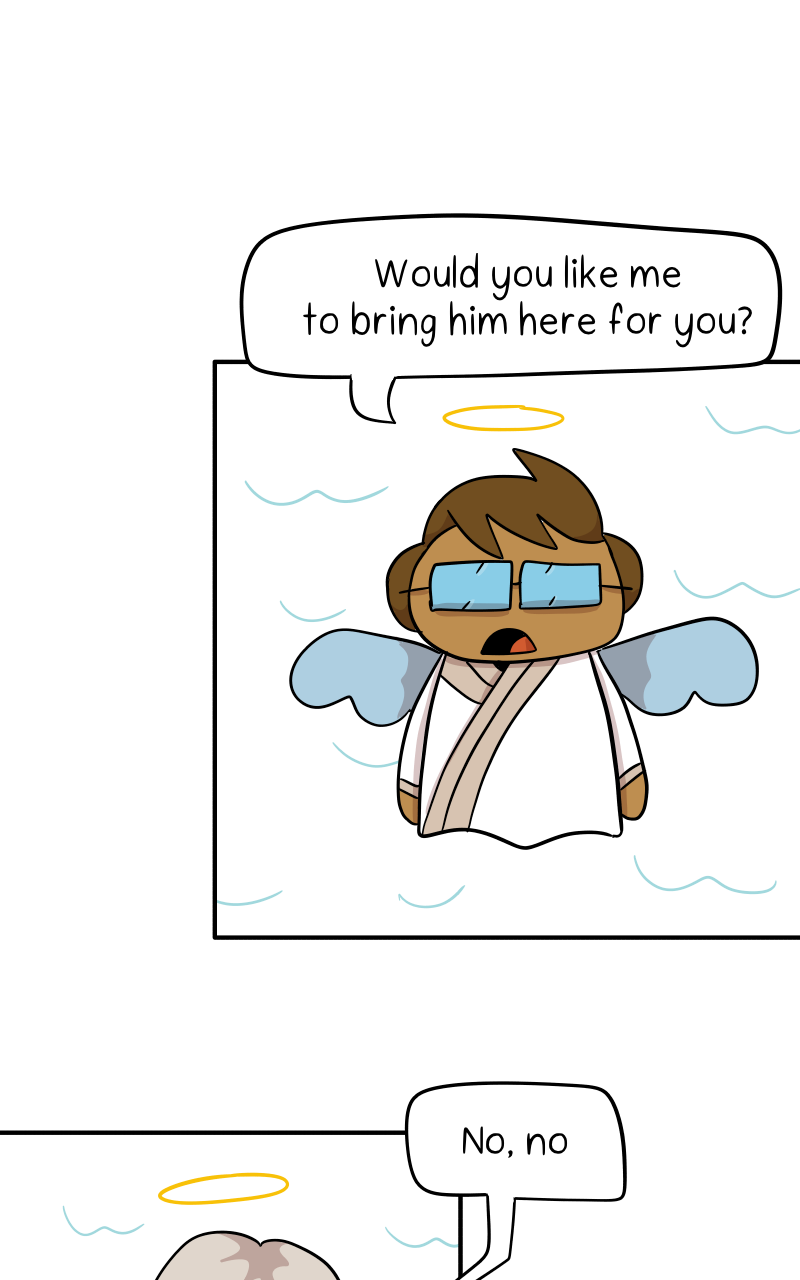 Howard Flumsy is such a wimp that he'd faint at the sight of blood! When God realizes he accidentally made him the unluckiest, cowardliest, and weakest man ever, he decides to make things right by giving him a Guardian Angel, Meredith. However, this is more than Howard can handle, as Meredith is a brutal warrior who loves going on killing sprees. Howard's cosmic bad luck keeps getting him into situations where Meredith unleashes unrelenting cruelty, and it gets him caught up in a plot to kill God himself!