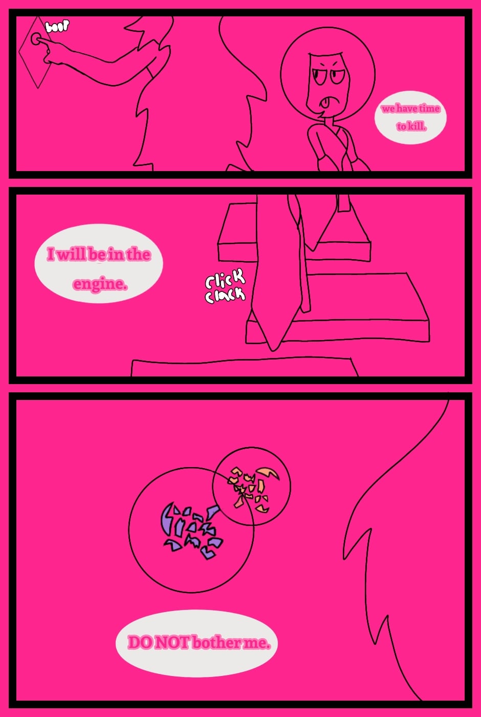 well howdy hey guess who goofed up and forgot to upload the episode to tapas after it being up on Tumblr for months. I APOLOGIZE </3. I'm still on hiatus, but now I'm working on getting a backlog of pages so I'm not overworking myself when its time to upload them. thanks for understanding, I'm more active on Tumblr, check it out if you like! :) https://www.tumblr.com/blog/steven-extended-auniverse or even https://www.tumblr.com/blog/octozay happy browsing!