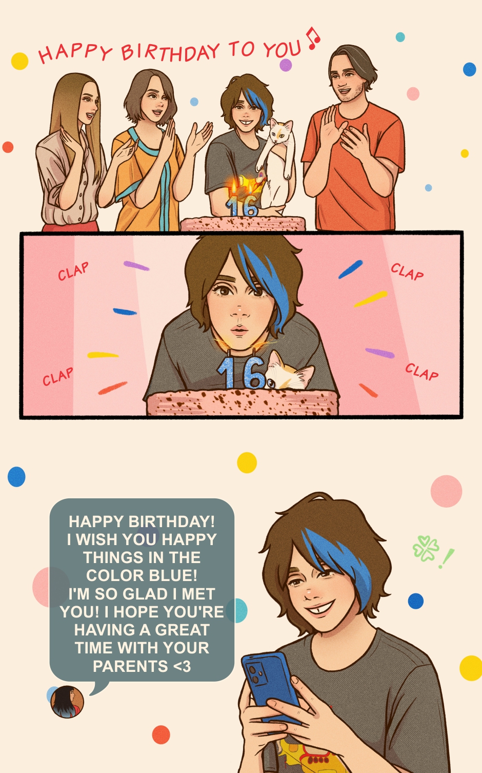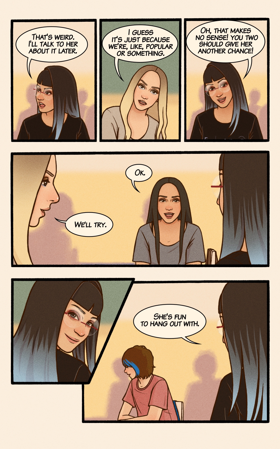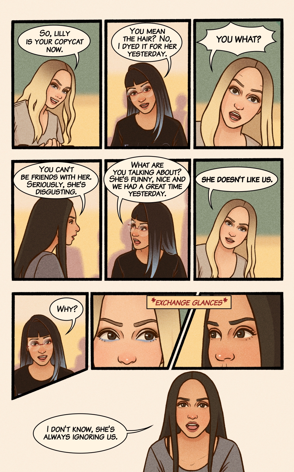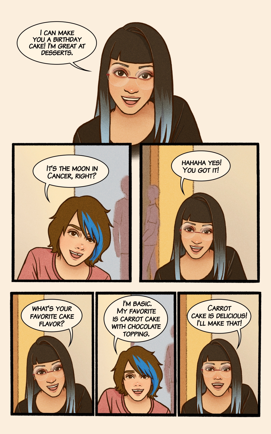 Lilly’s a fun and Lighthearted teen, living life to the beat of her favorite songs, filled with silly mishaps, cats, and joy. But when a girl with blue hair comes into the picture, her world suddenly bursts with new colors—and Lilly knows she has to find a way to get closer to her.