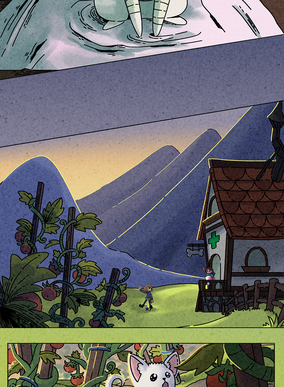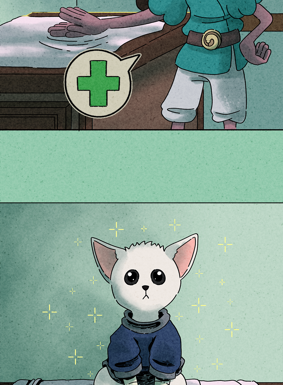 Look at that! The little guy and the girl have had strong fights, but they have managed to emerge victorious from their battles. Every time you accomplish something you need some time to take care of yourself. Heal your wounds, take some time to rest and continue your travels!