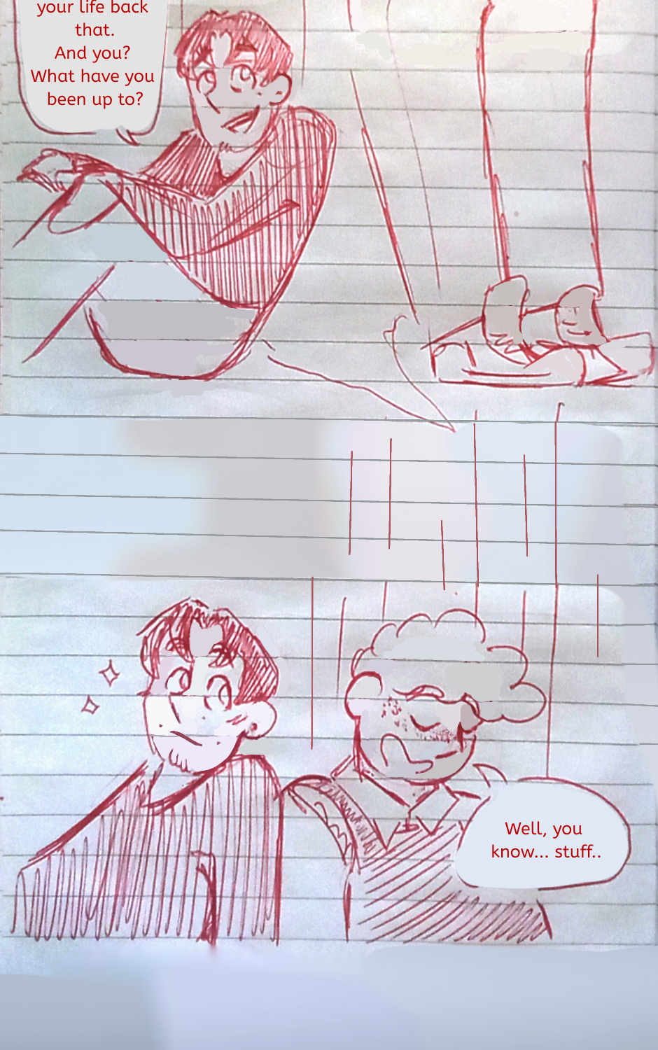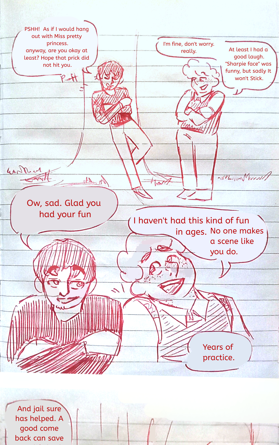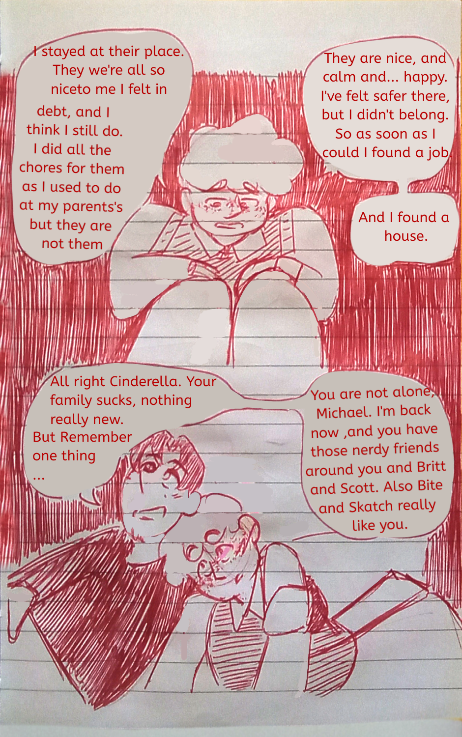 Michael and Jackson take a walk ouside, having their first talk since they reunited. They sit under a tree as Michael tells his friend about the past years...