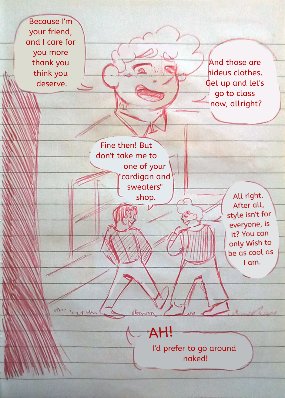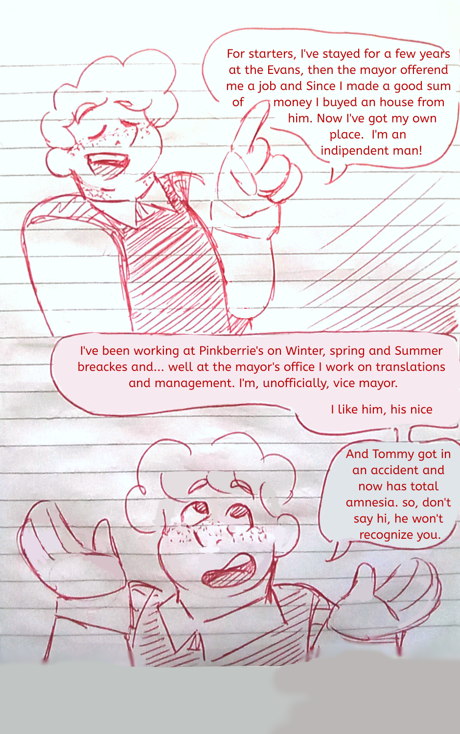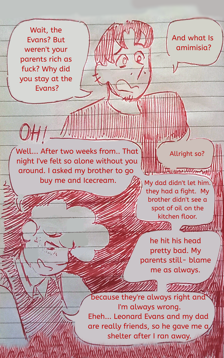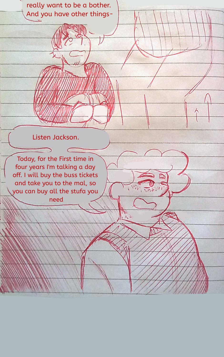 Michael and Jackson take a walk ouside, having their first talk since they reunited. They sit under a tree as Michael tells his friend about the past years...