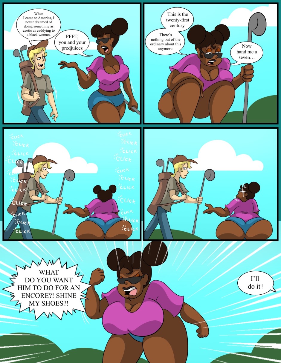 Did those guys want a picture of a the "novelty" of a white man caddying a black woman, or just an ass shot? Either way, Betta is not going to stand for it!